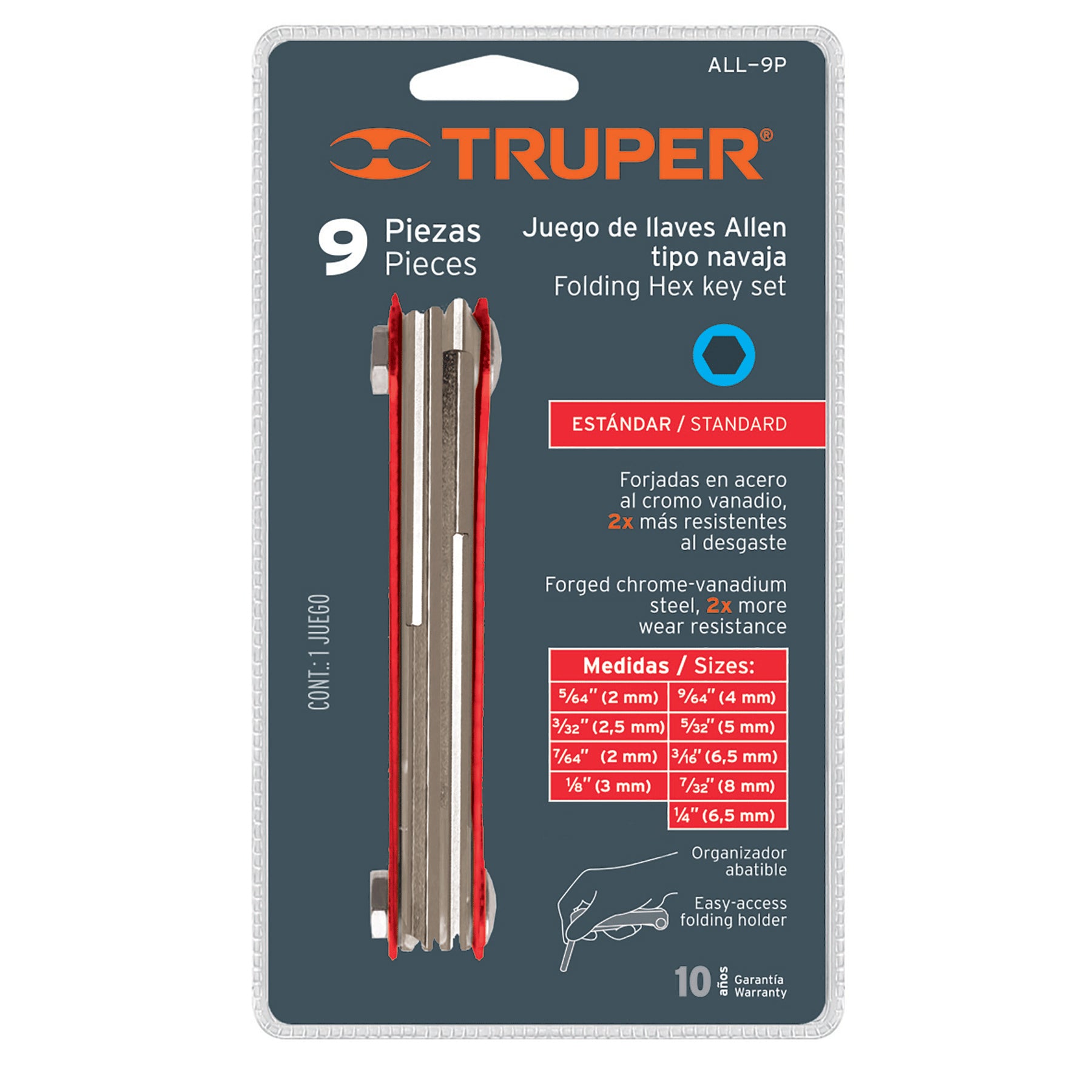 Juego de 9 llaves Allen, tipo navaja, cuerpo de lámina, std