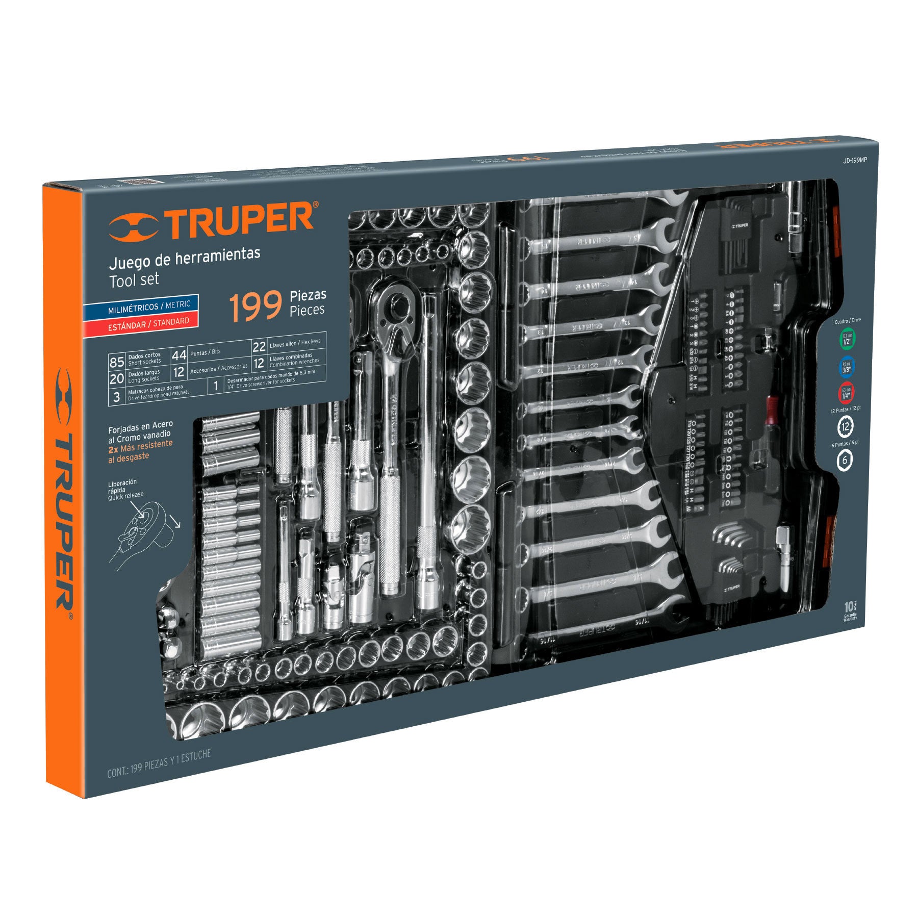 Juego de herramienta para mecánico, mixto, 199 piezas