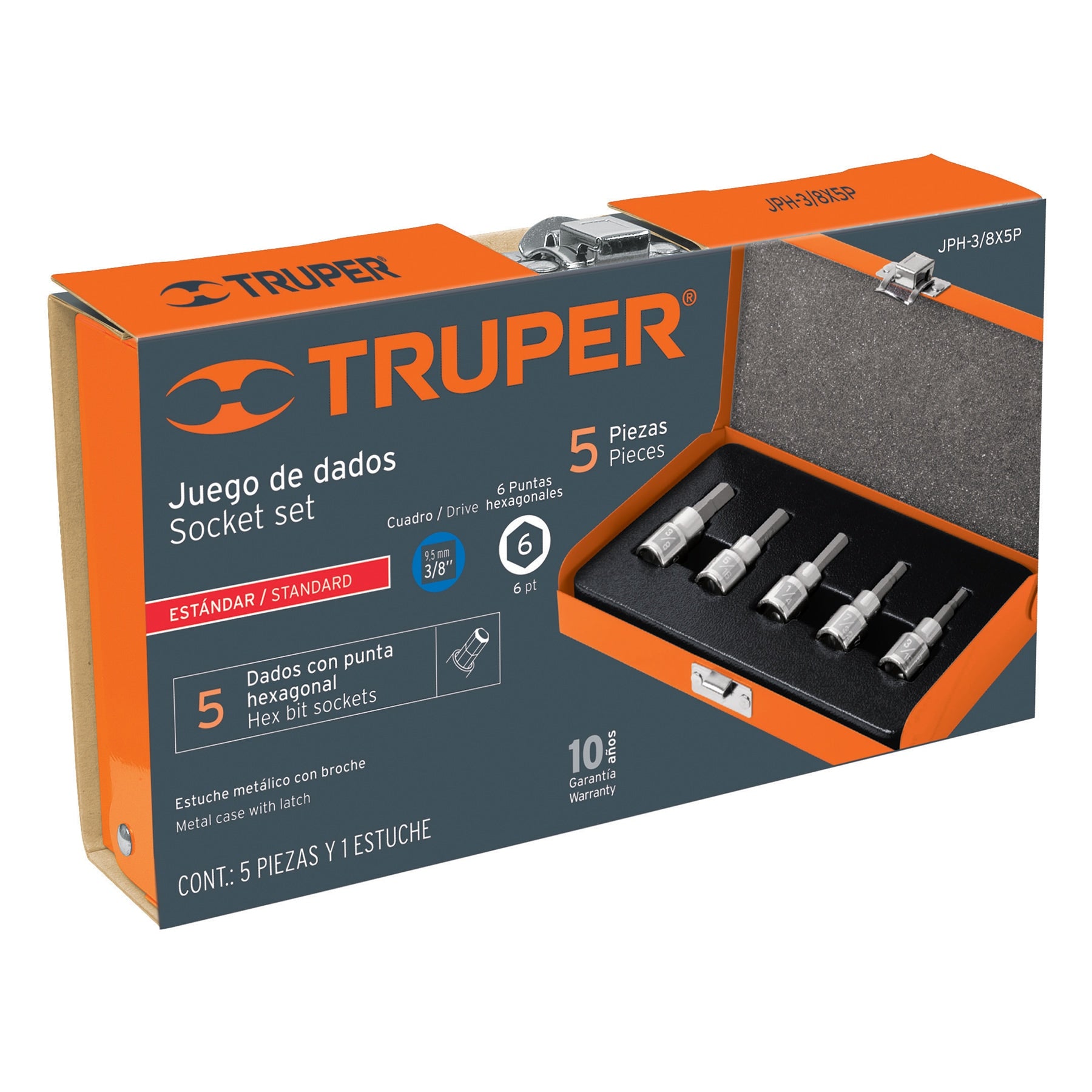 Juego de dados, punta hexagonal, cuadro 3/8", 5 piezas