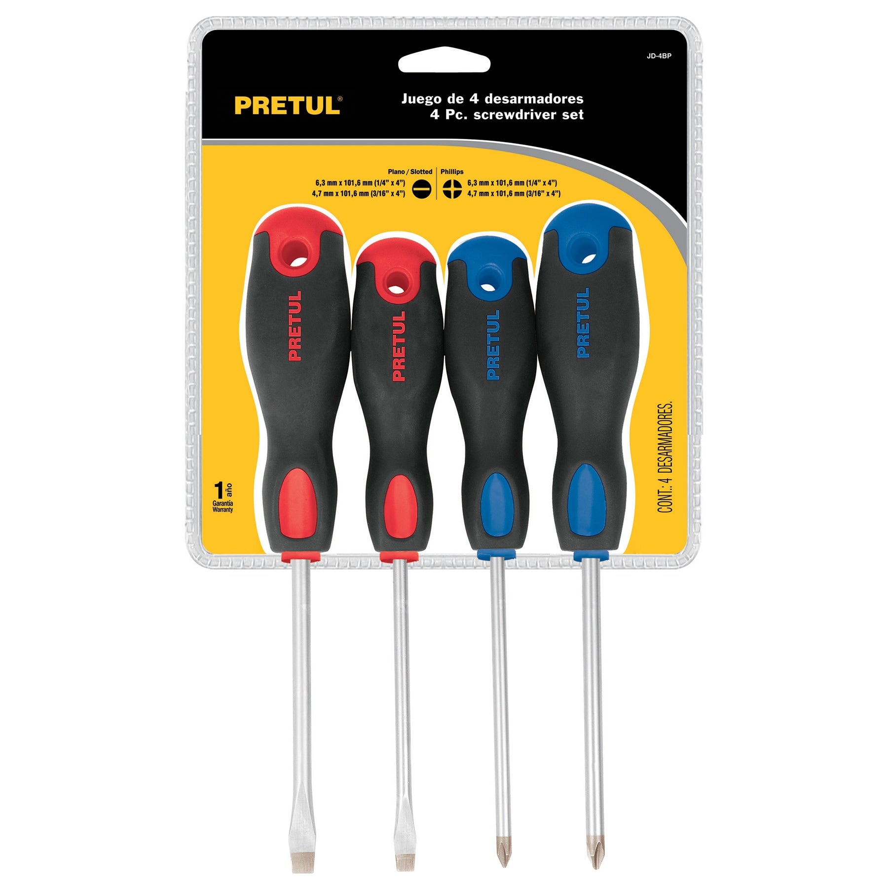 Juego de desarmadores, 4 piezas, mango Comfort Grip, Pretul
