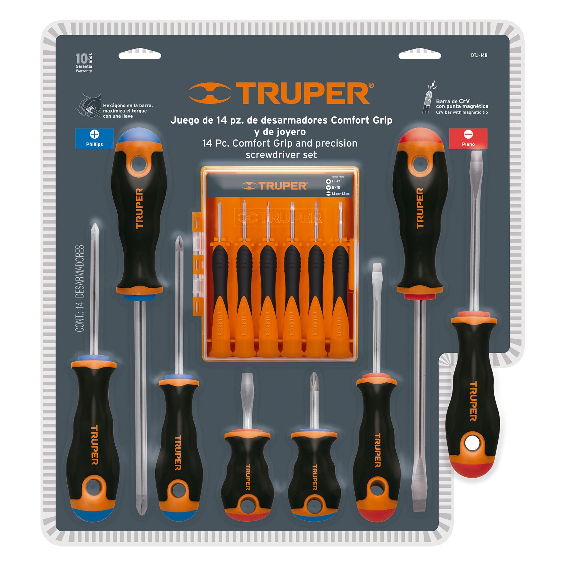 Juego de desarmadores, mango comfort grip, 14 piezas, blister