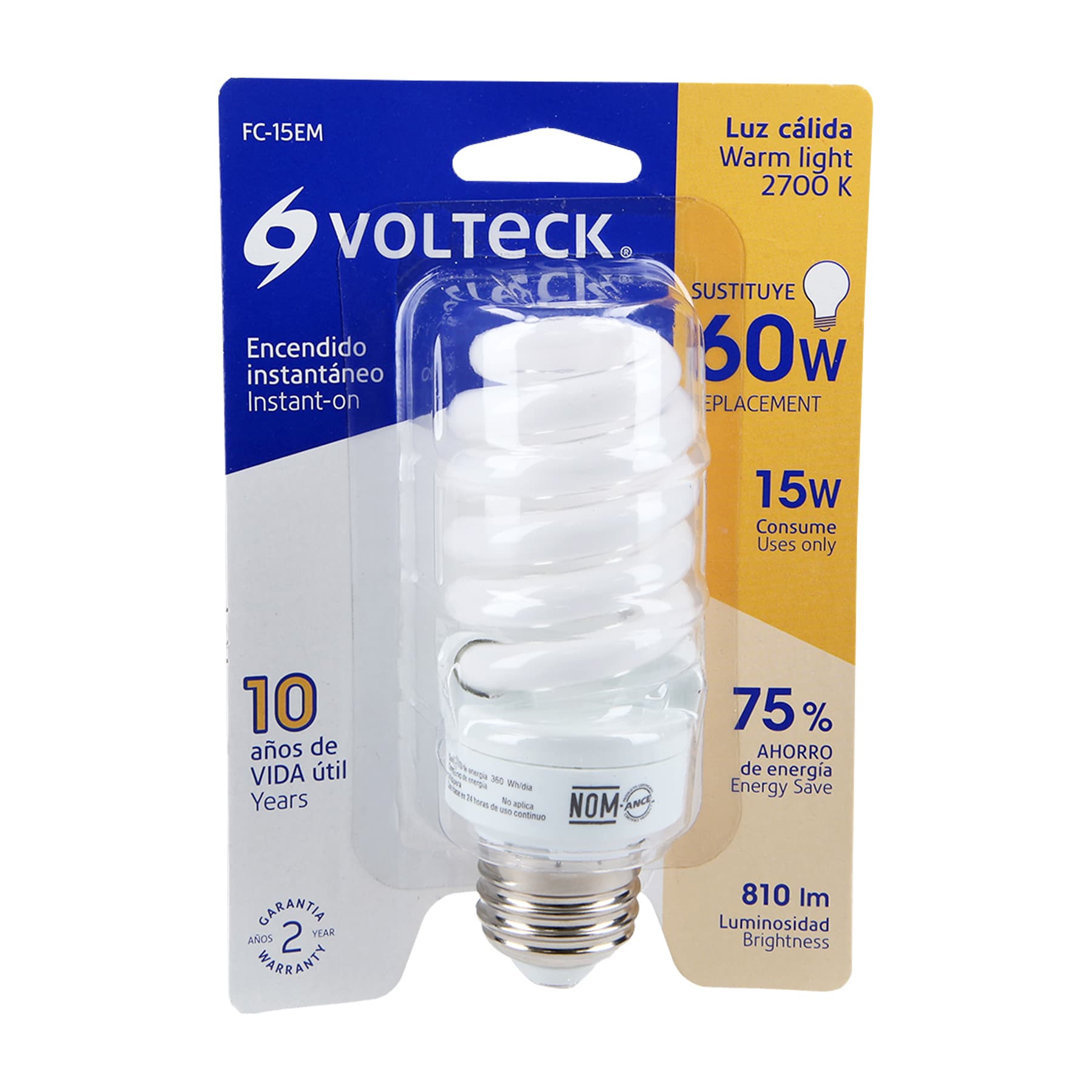 Lámpara 15 W, espiral mini, luz cálida, T2, en blíster