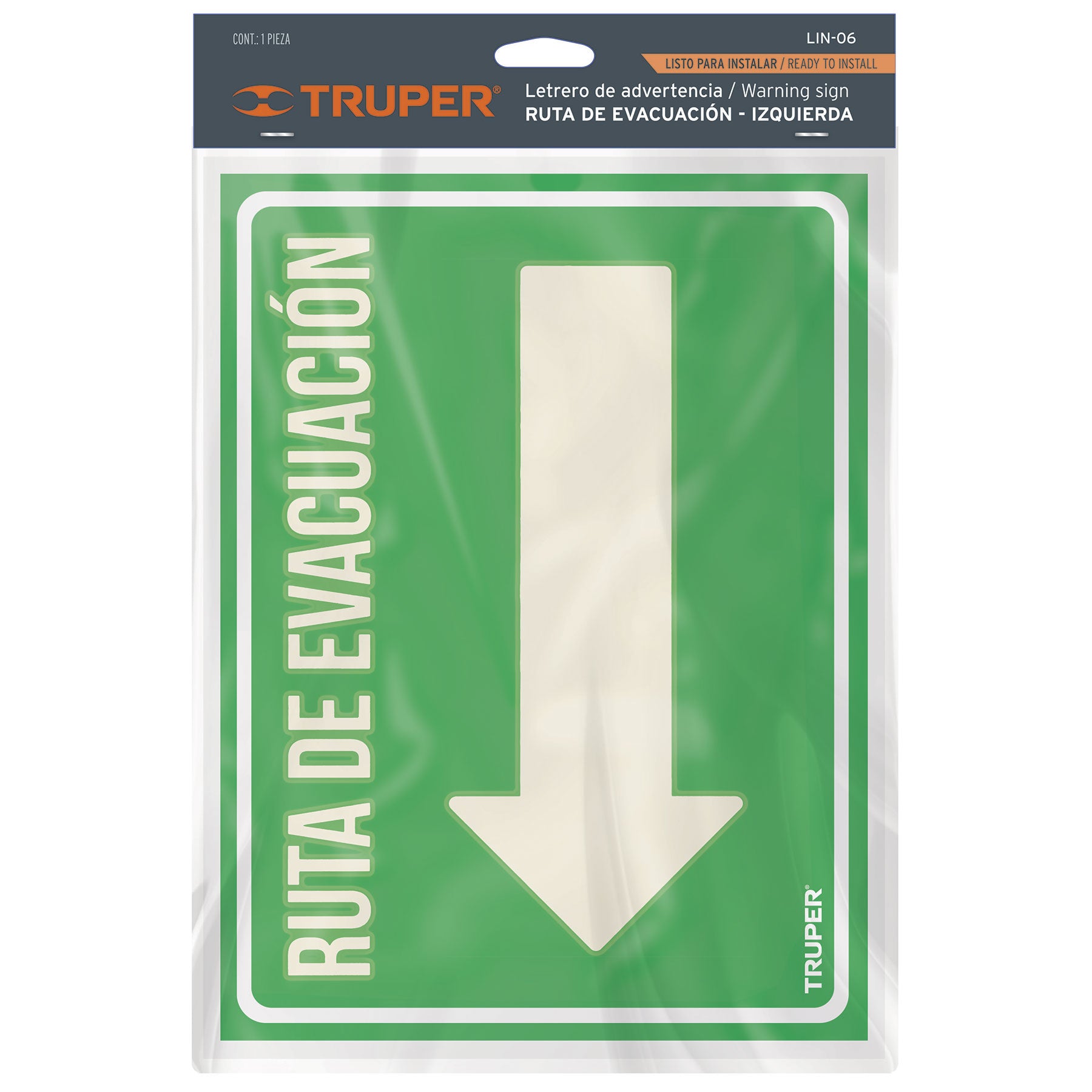 Letrero de señalización "RUTA EVACUACIÓN IZQUIERDA", 21x28 cm