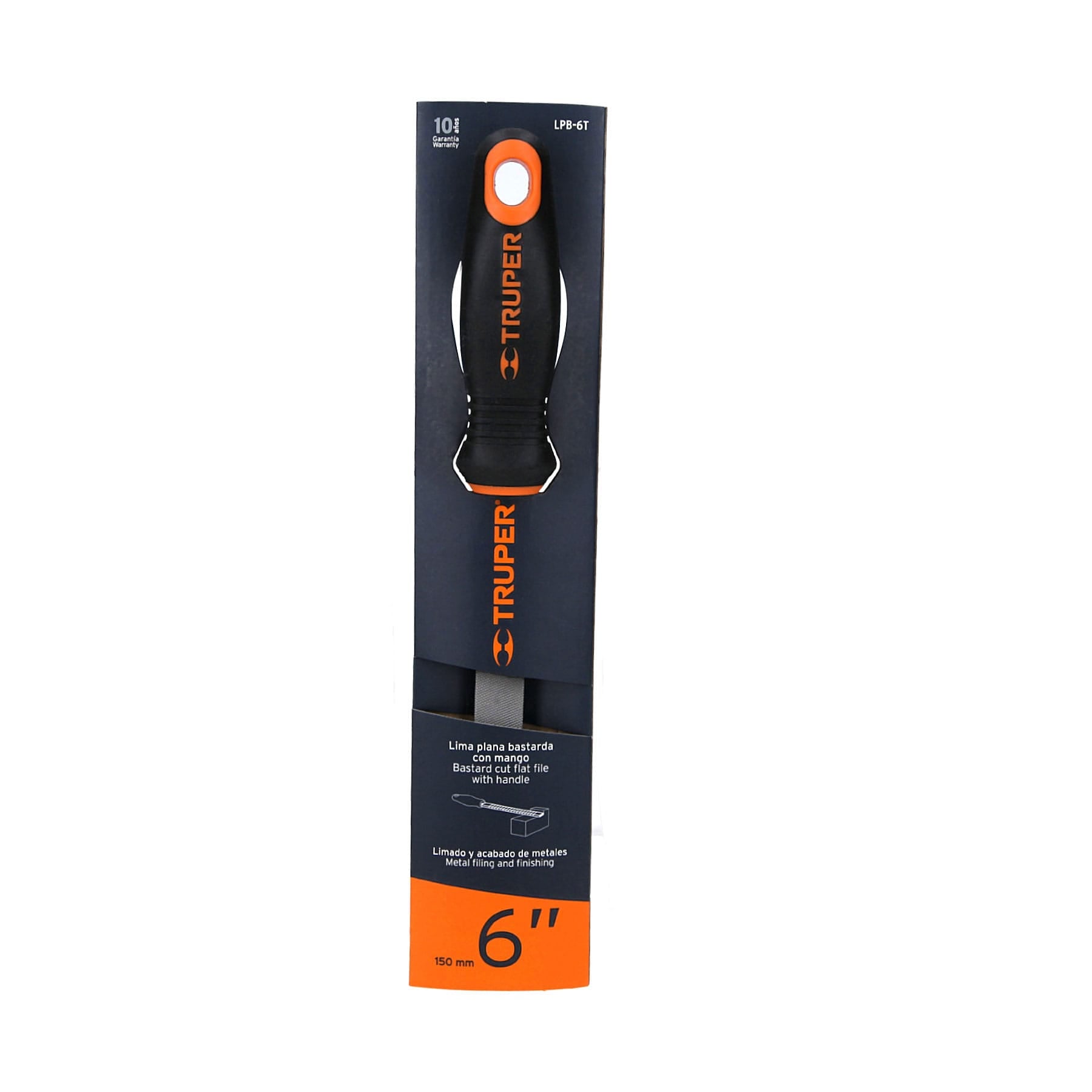 Lima plana, bastarda, 6" con mango doble inyección