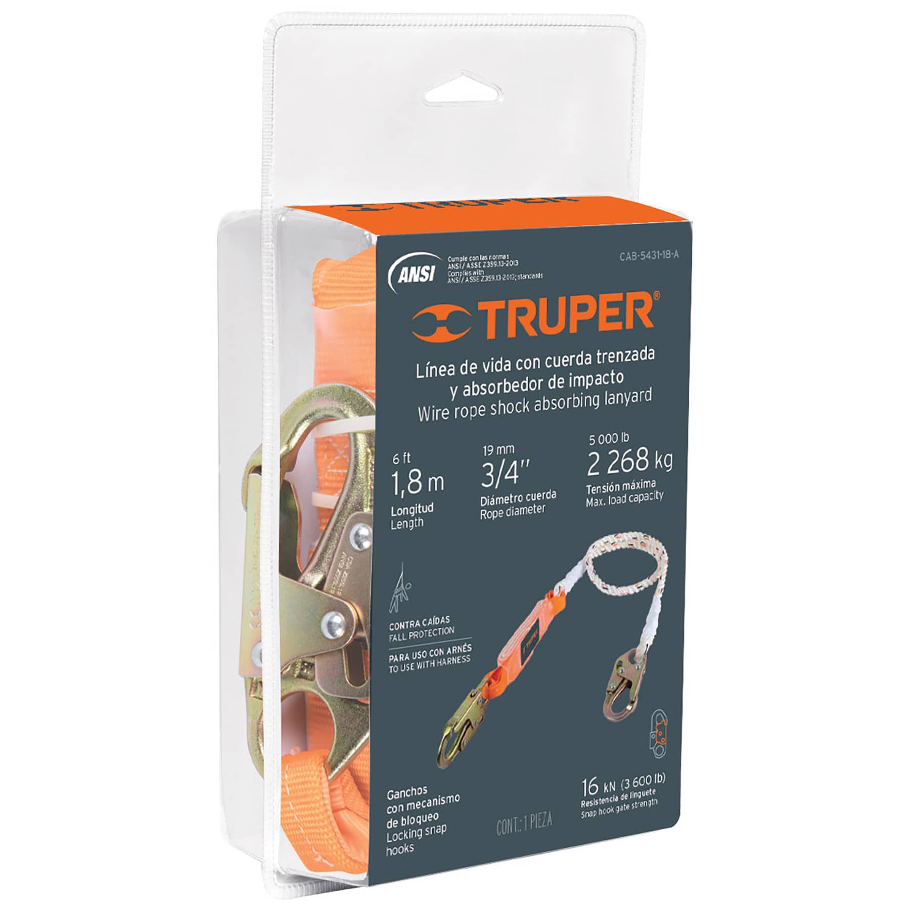 Línea de vida de nylon con amortiguador, 1.8 m, ANSI