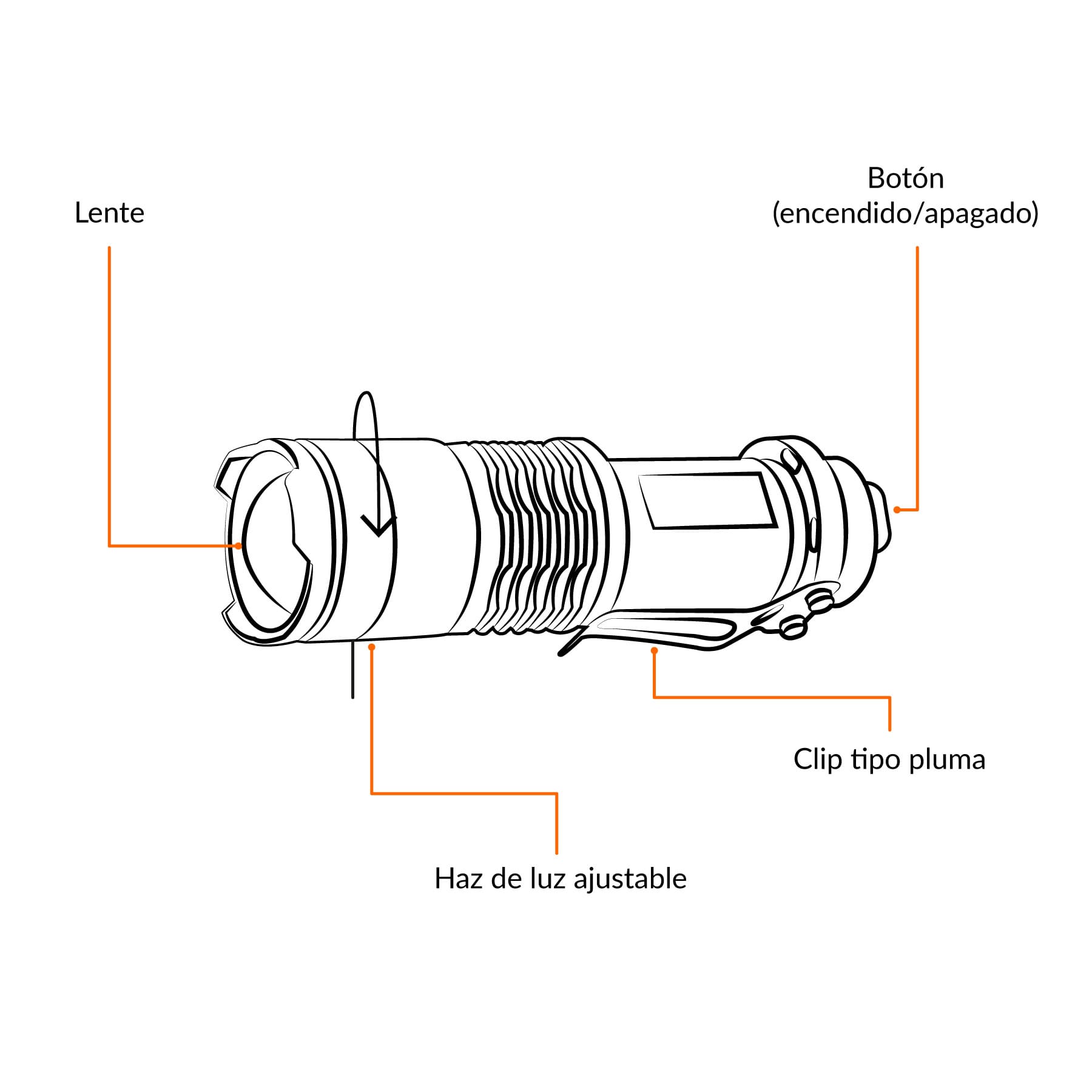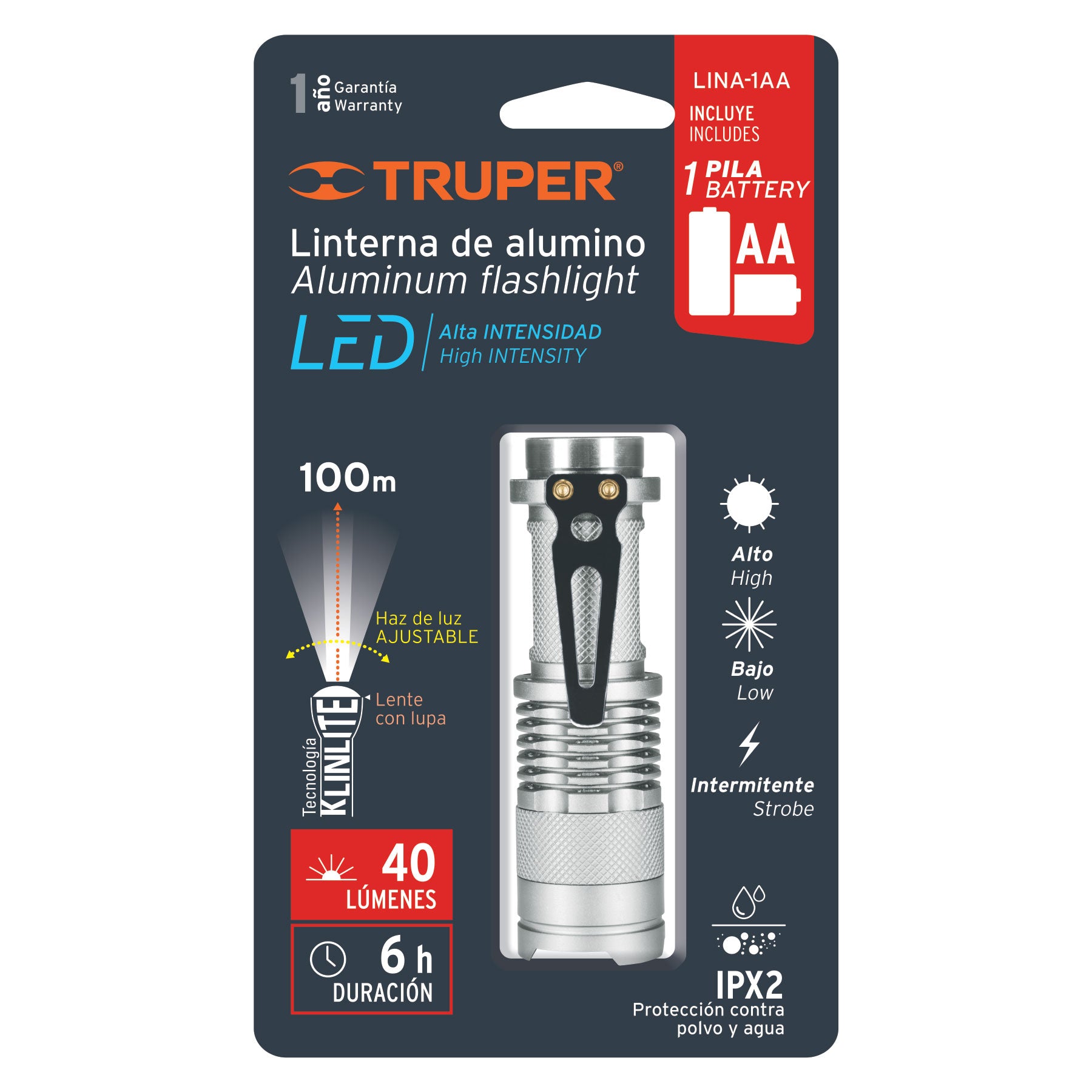 Linterna de aluminio con 1 pila AA, 40 lúmenes, 1 LED