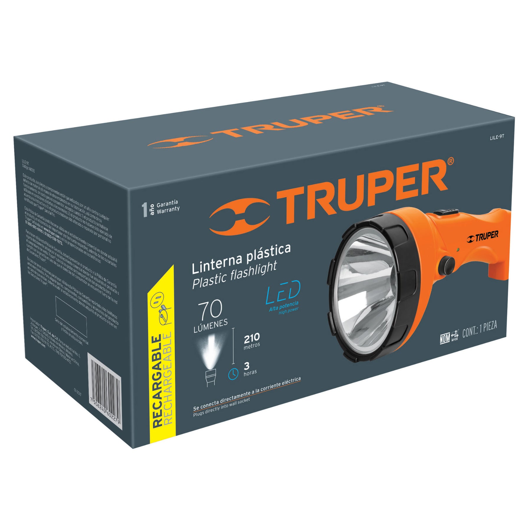 Linterna recargable de leds, 70 lúmenes