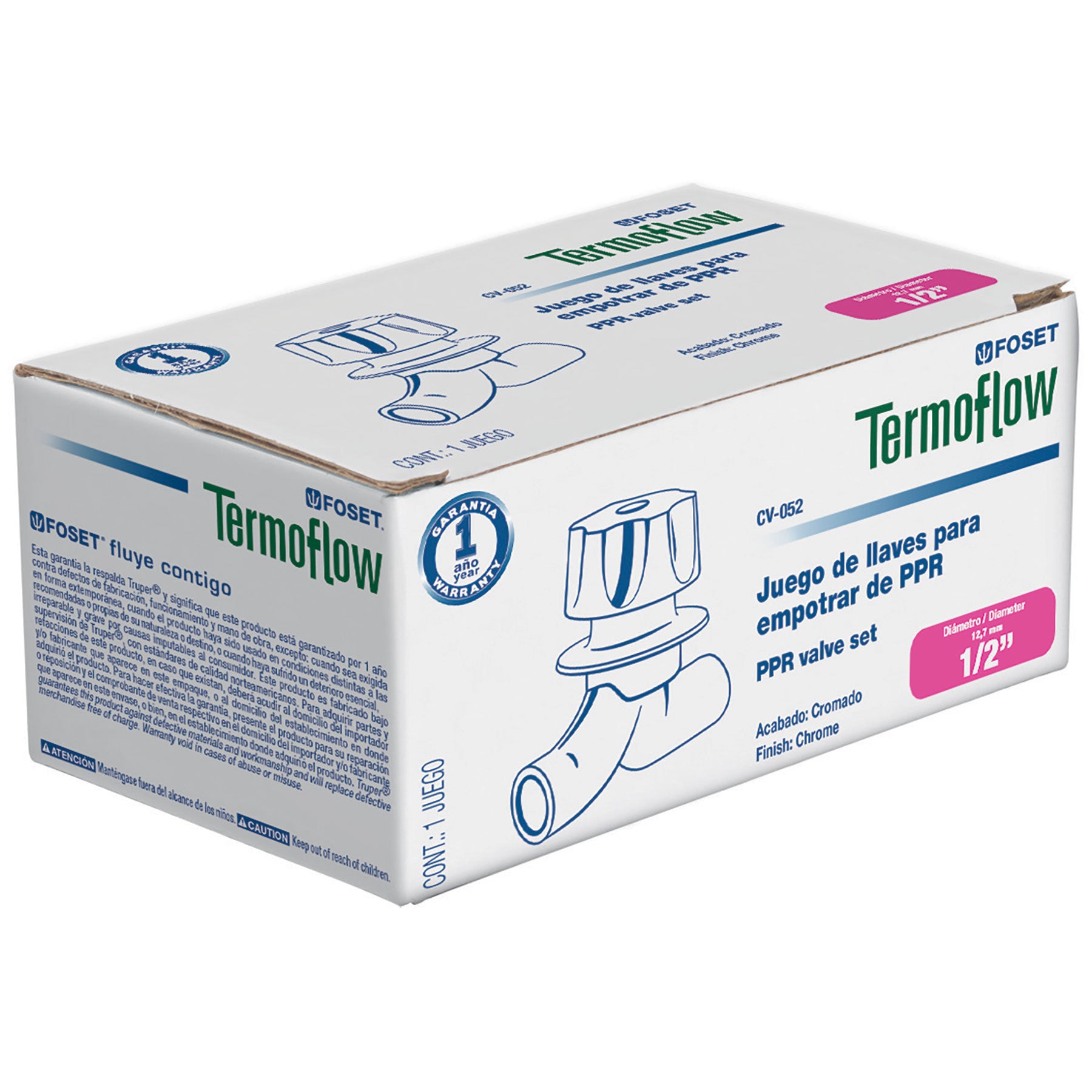Diámetro nominal 1/2" (20 mm) Presión máxima a 20°C 24 kgf/cm² / 340 PSI Presión máxima a 95°C 6 kgf/cm² / 90 PSI Empaque individual Caja Inner 5 Master 15 Pallet 720
