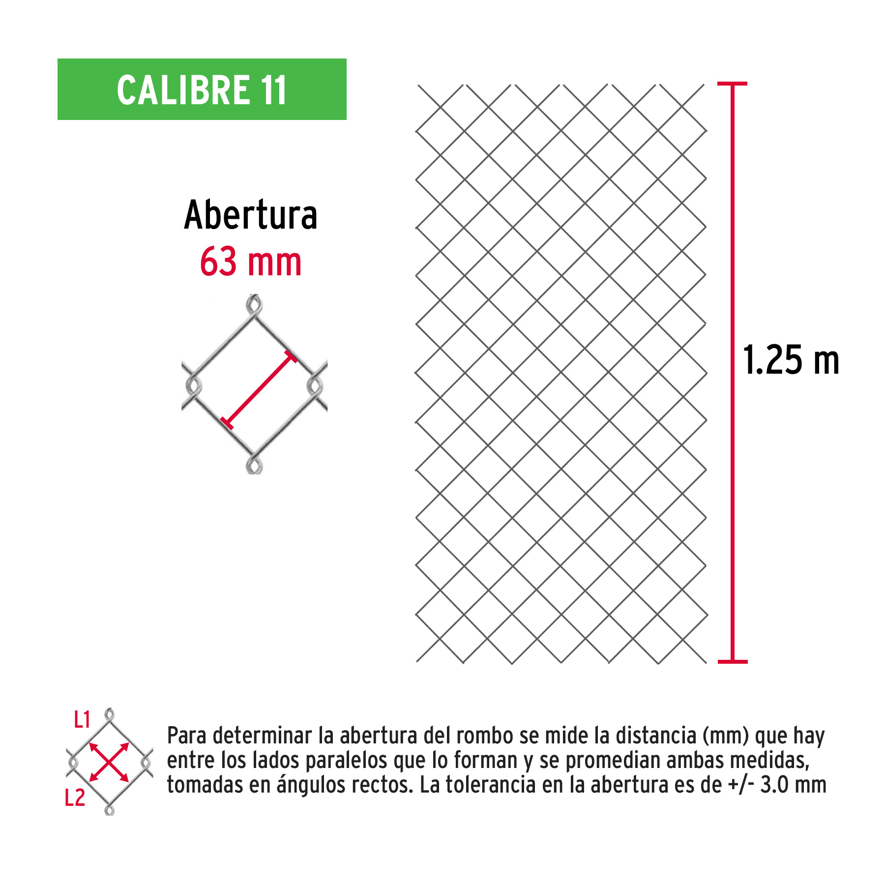 Malla ciclónica, calibre 11, abertura 63 x 63, 1.25 x 20 m