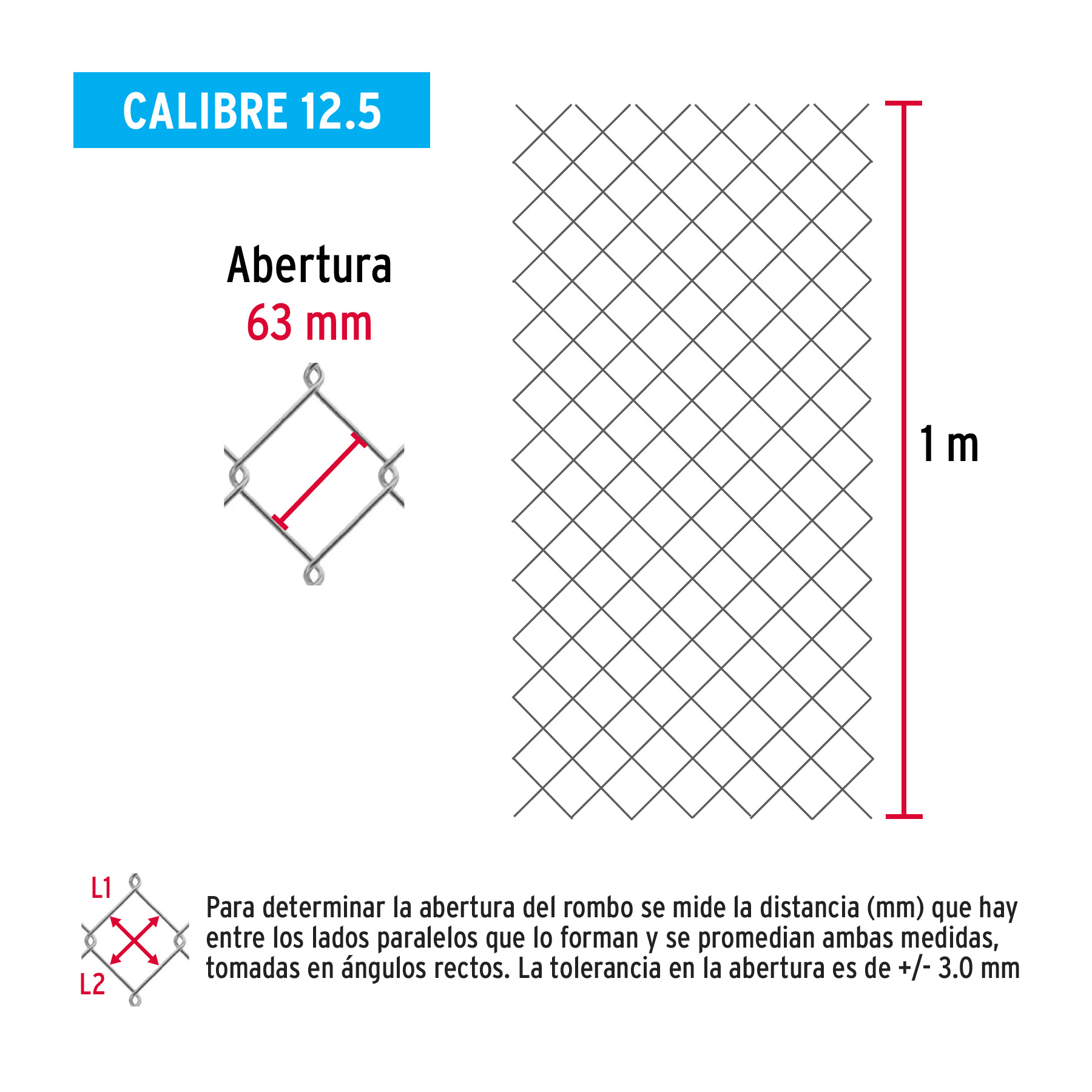 Malla ciclónica, calibre 12.5, abertura 63 x 63, 1 x 20 m
