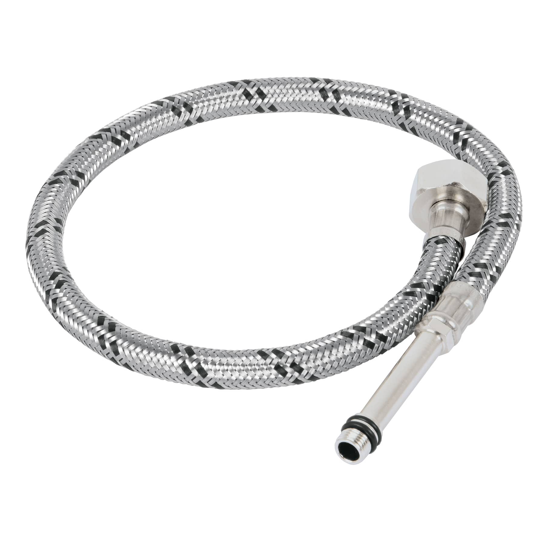 - Trenzado de acero inoxidable sobre manguera de hule EPDM para mayor durabilidad y resistencia a la presión