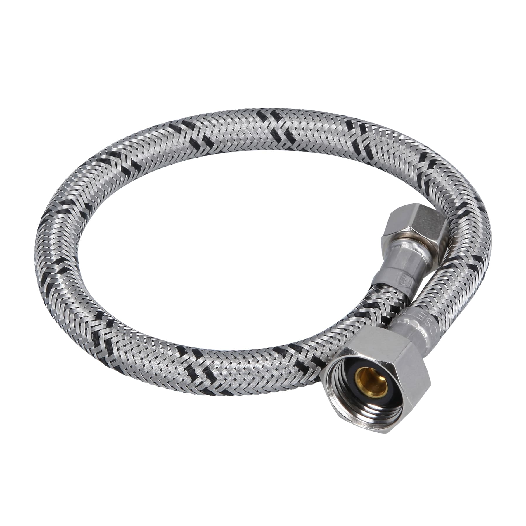 - Trenzado de acero inoxidable sobre manguera de hule EPDM para mayor durabilidad y resistencia a la presión
