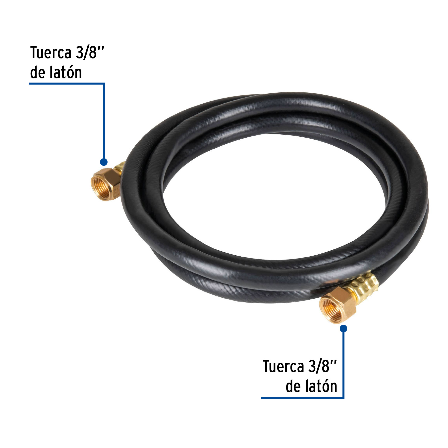 Manguera flexible negra, PVC, 3/8", 250 PSI, con conexión, 1m