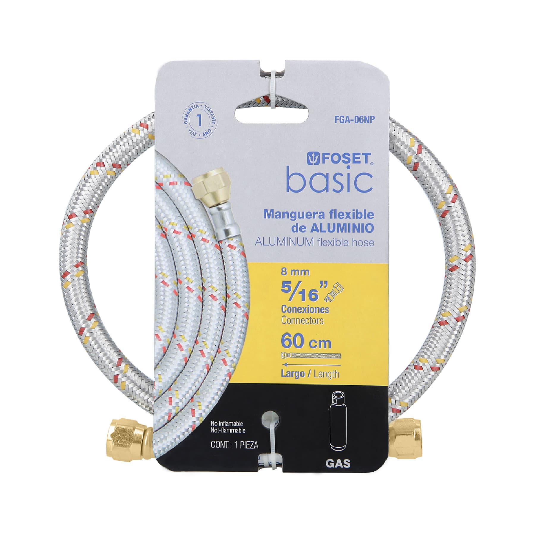 Manguera para gas, aluminio, 5/16" X 60 cm, Foset Basic