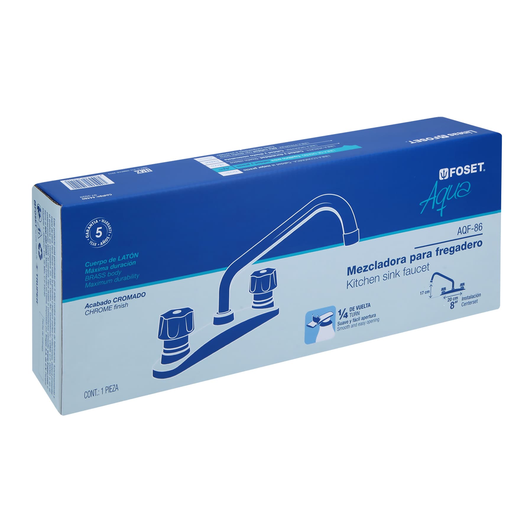 Mezcladora fregadero, manerales metálicos, base curva, Aqua