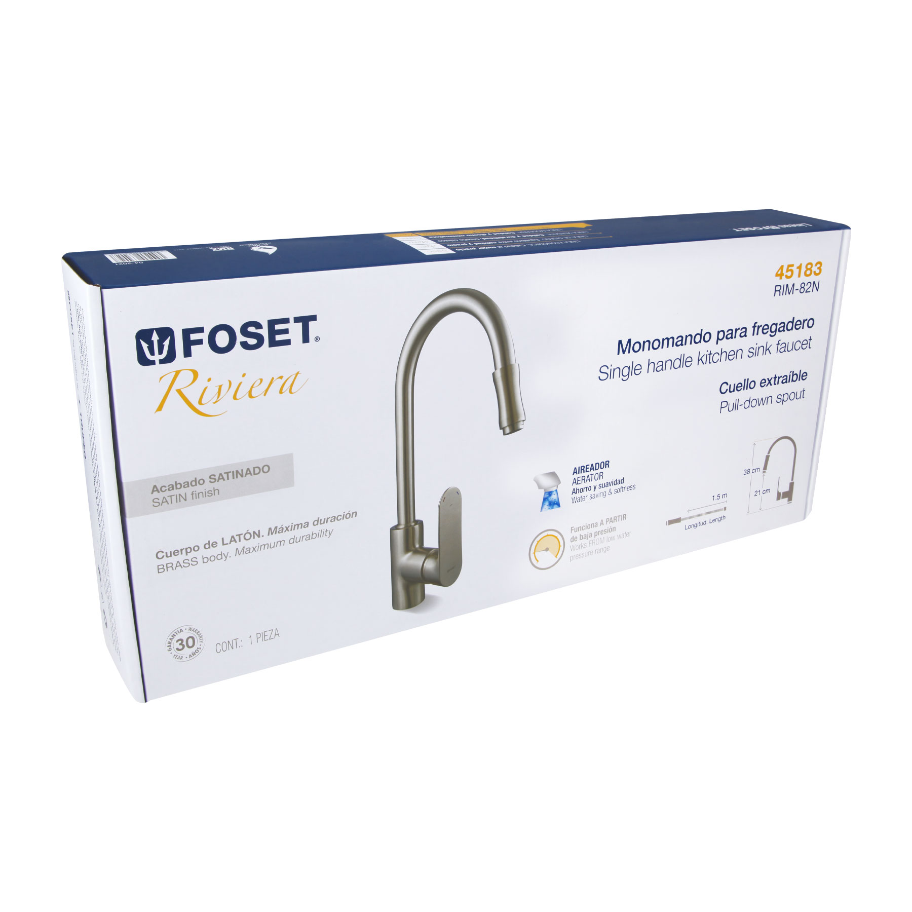 Mezcladora para fregadero, manguera extraíble, satín, Riviera