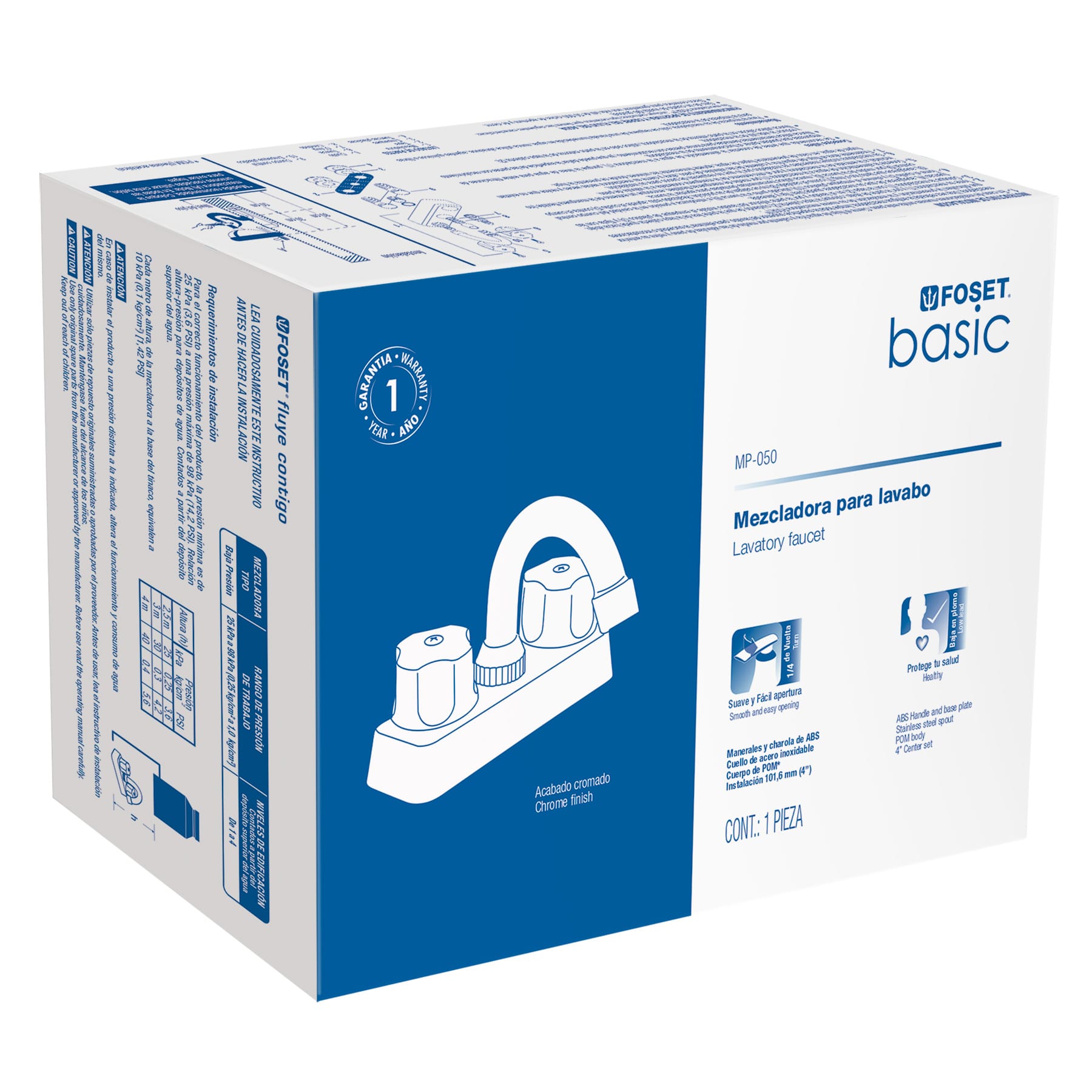 Mezcladora plástica lavabo, cuello curvo, manerales estándar