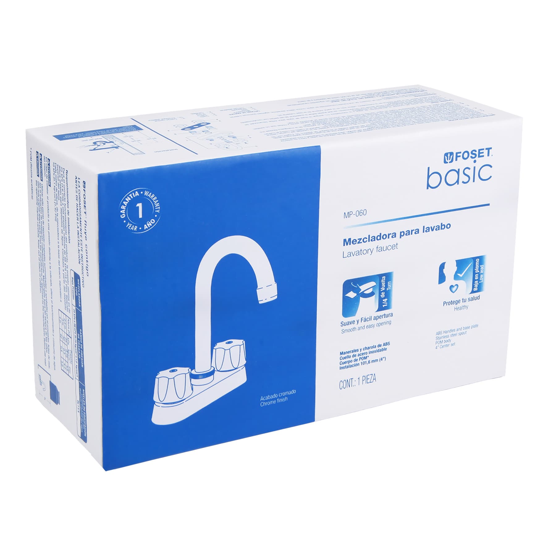 Mezcladora plástica para lavabo, cuello tipo bar, Basic