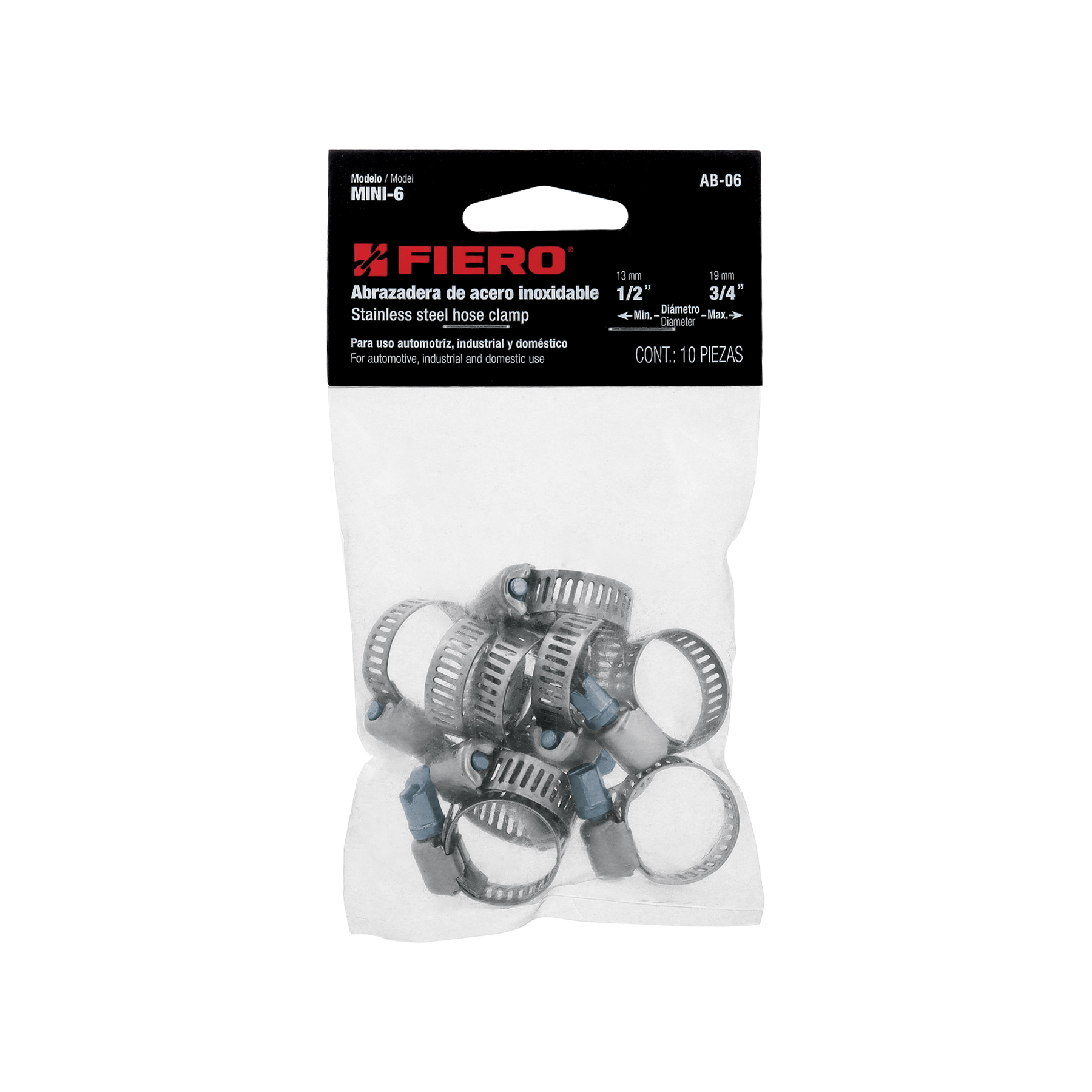 Mini-abrazadera reforzada, # 6, 1/2 - 3/4", bolsa 10 pzas