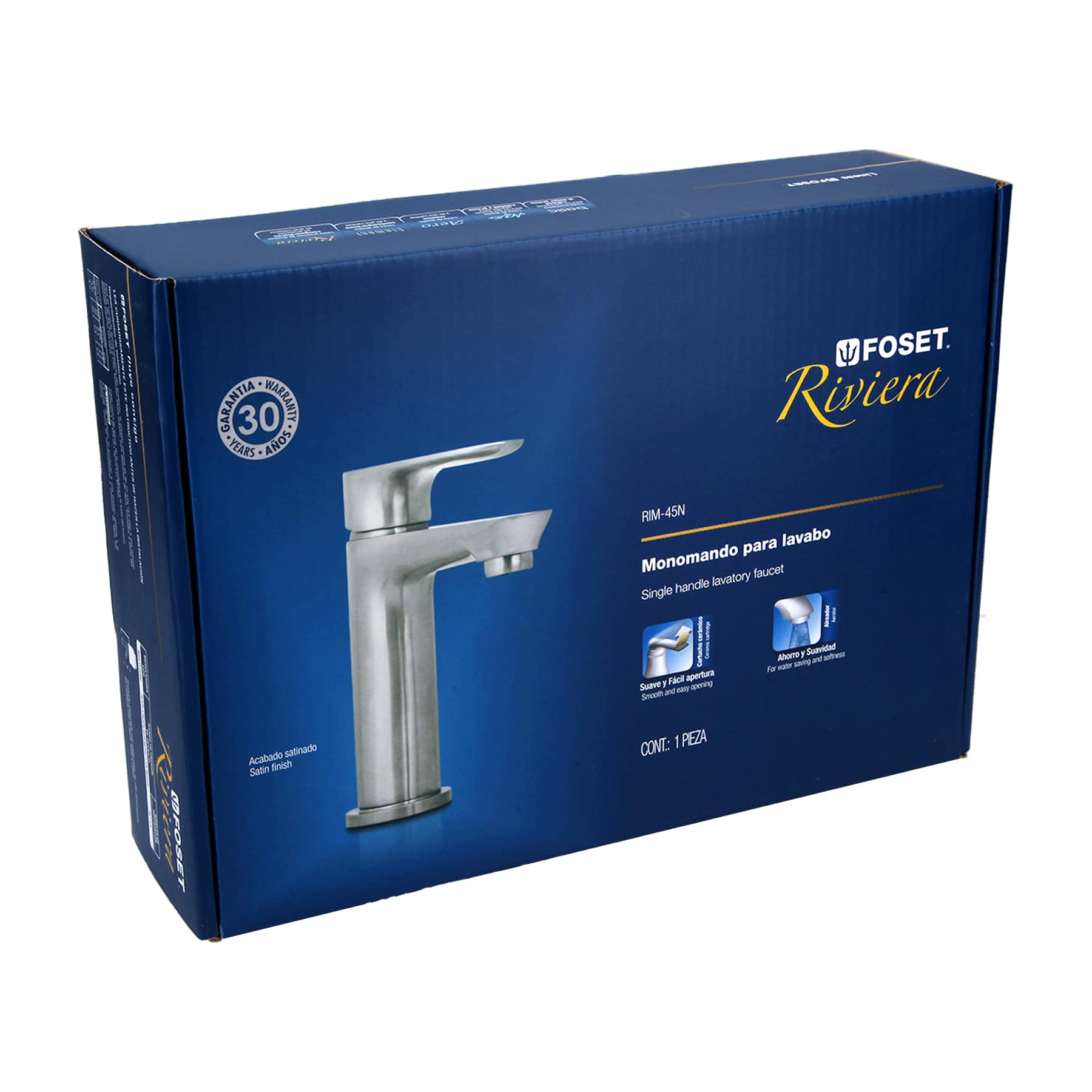 Monomando corto para lavabo, satín, Riviera