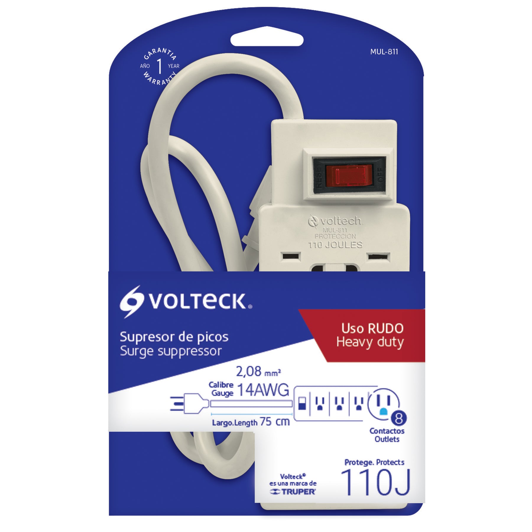 Multicontacto uso rudo, 8 entradas, supresor, 110 joules