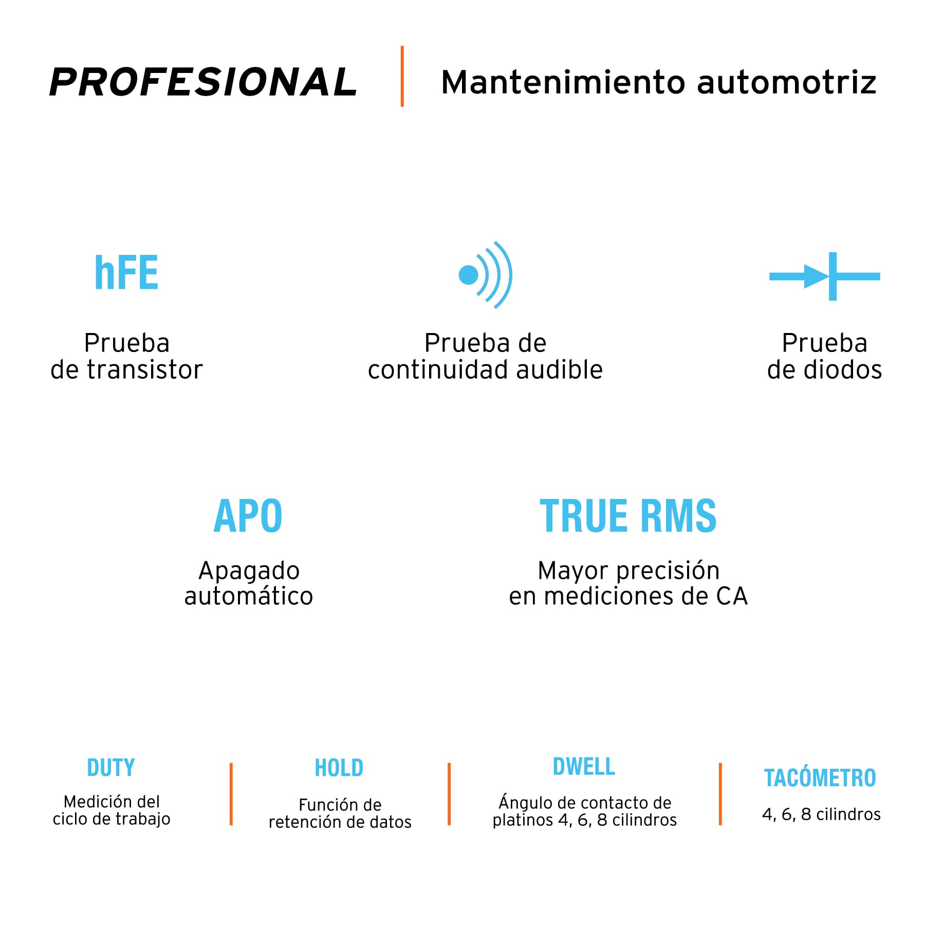Multímetro digital para mantenimiento automotriz con RMS verdadero