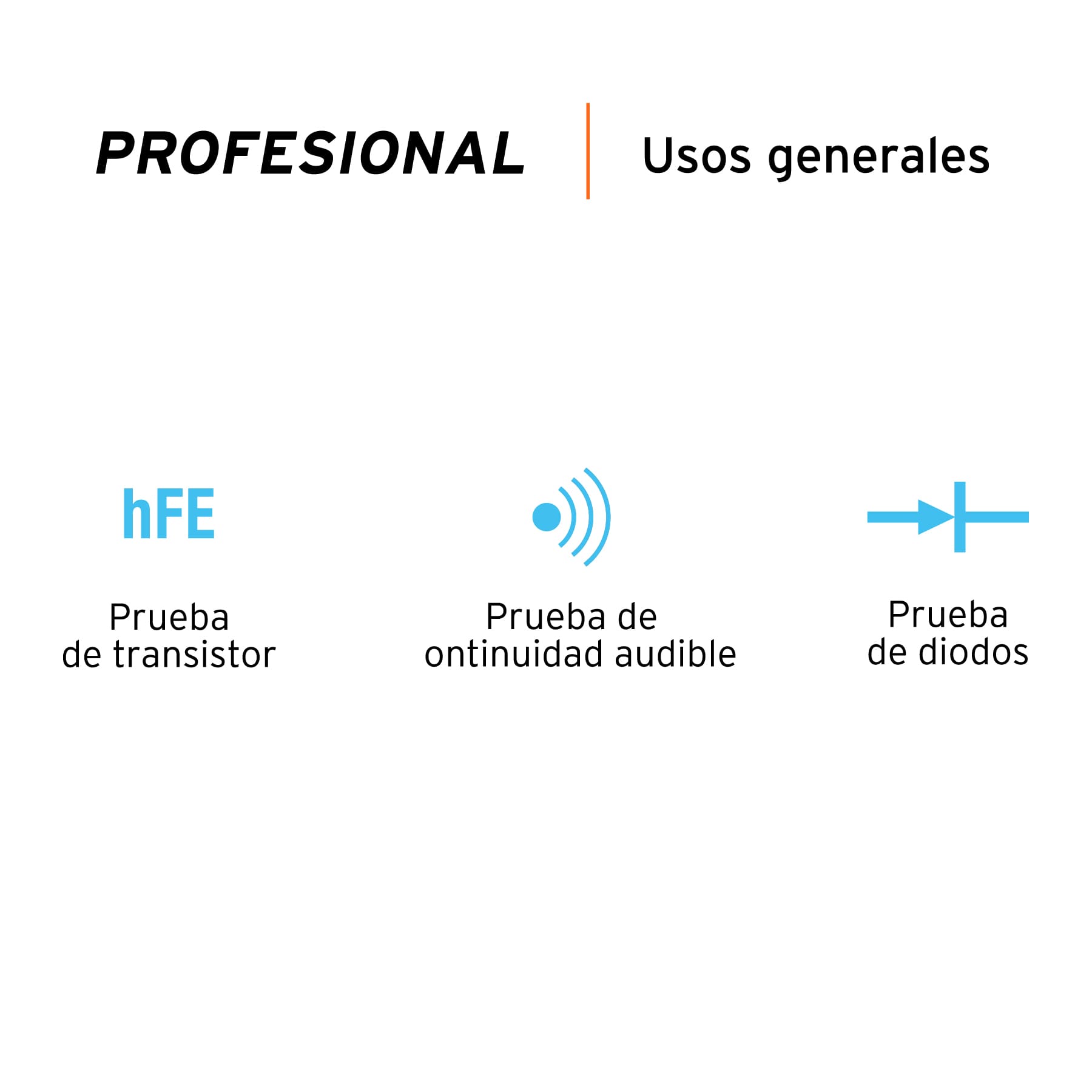 - Prueba de diodo, continuidad y transistor NPN o PNP (0-1,000 B)