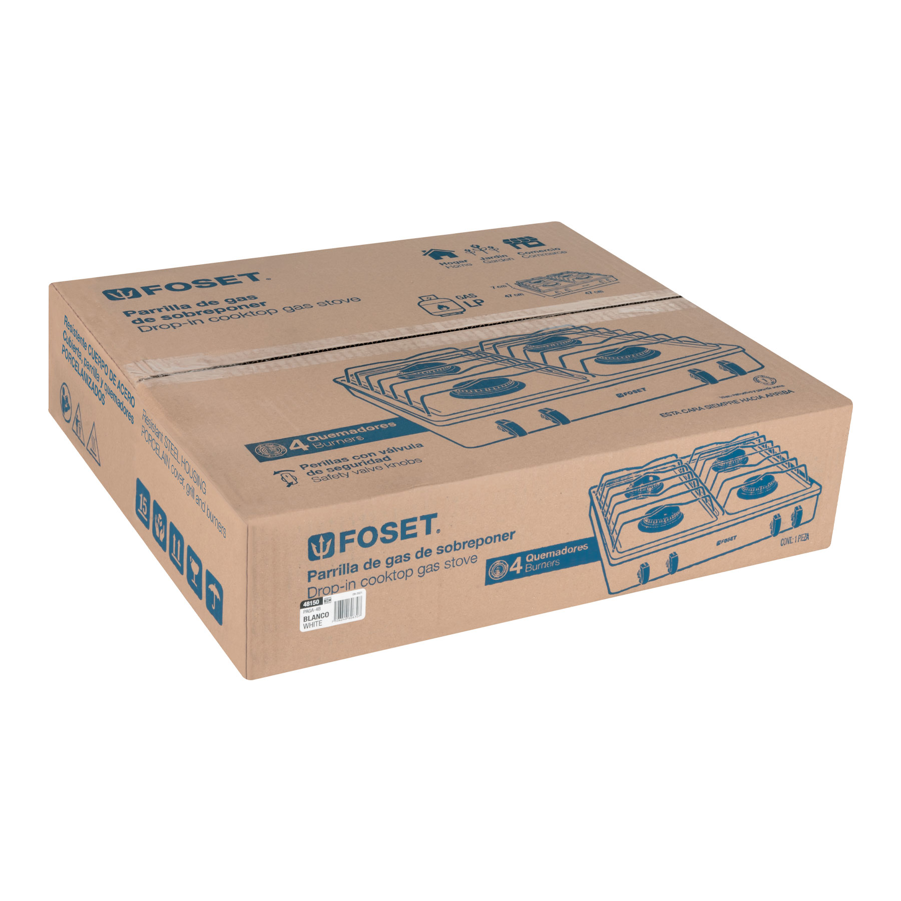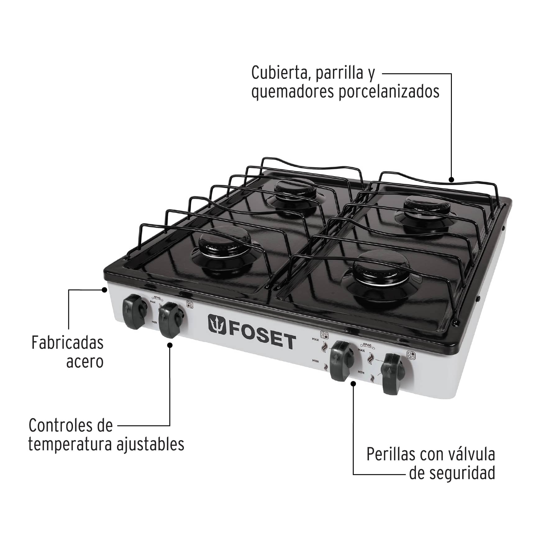 - Cubiertas, parrillas y quemadores porcelanizados