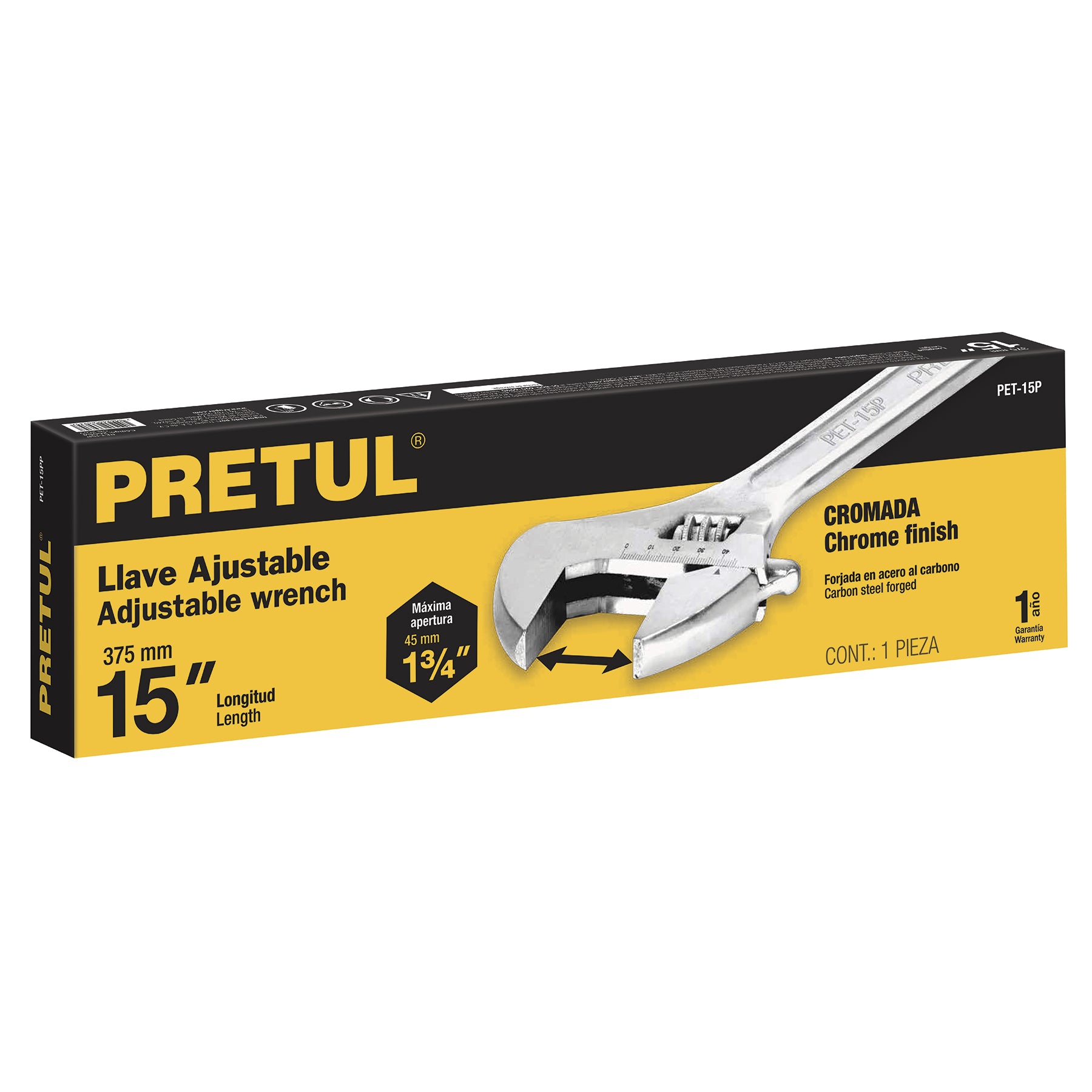 Llave ajustable (perico), cromado 15" Pretul