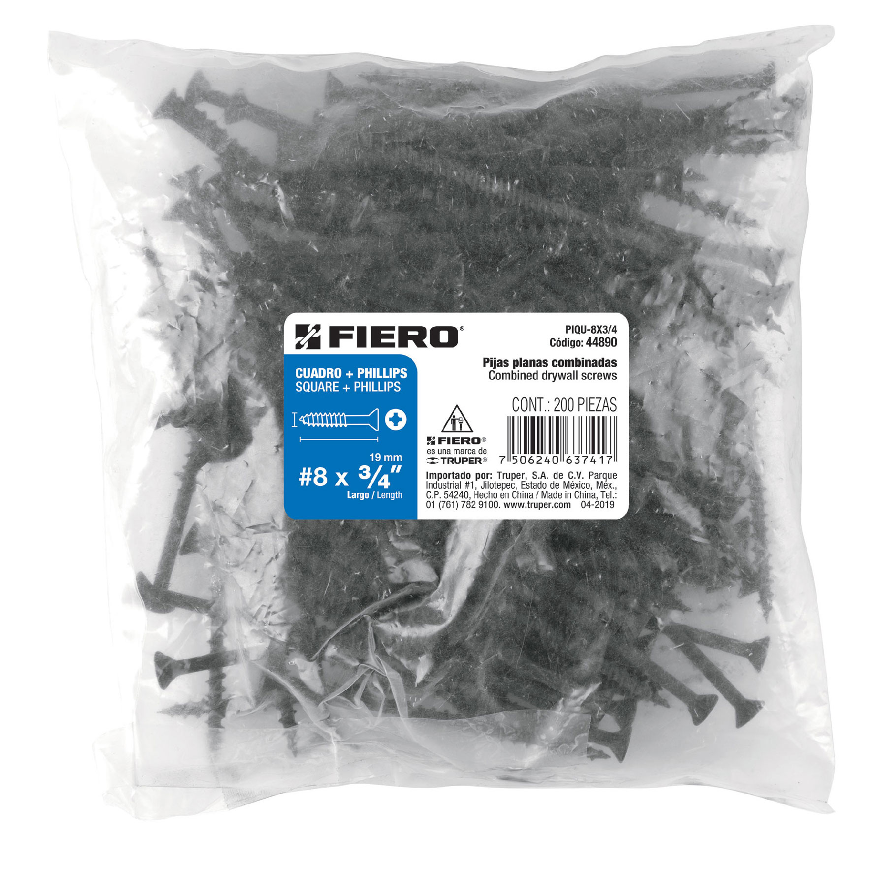 44890 | PIQU-8X3/4 | 3/4" (19 mm) | 6 | 60 | 2160 |