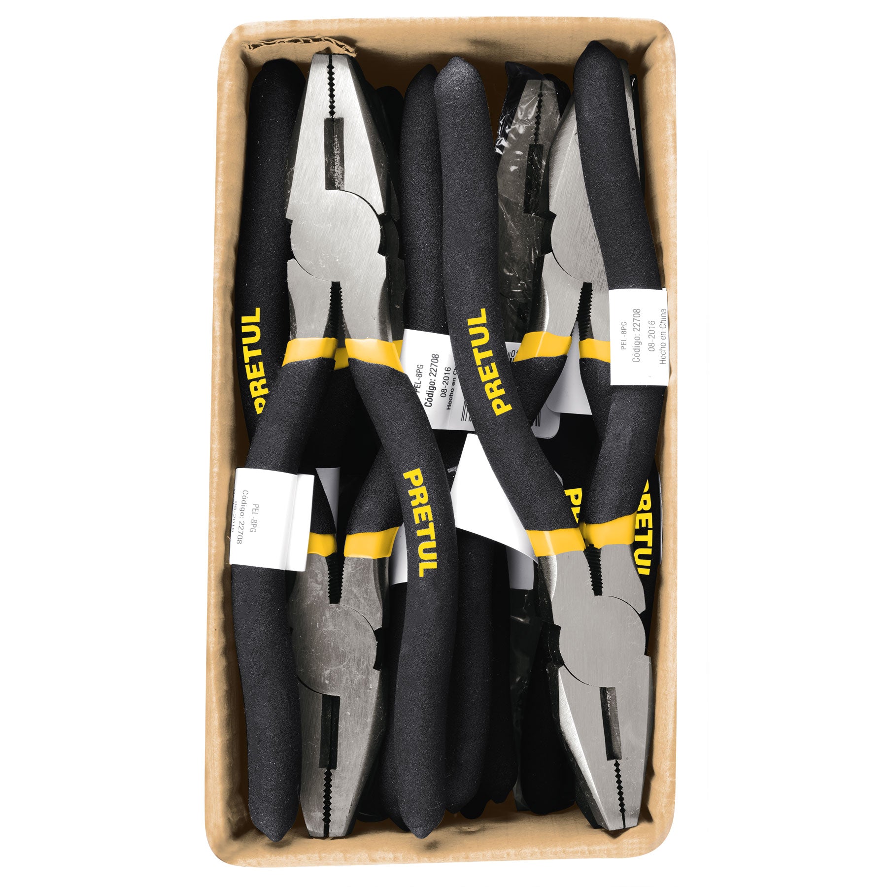 - Punta plana y mordaza con estriado recto para agarre firme y seguro.