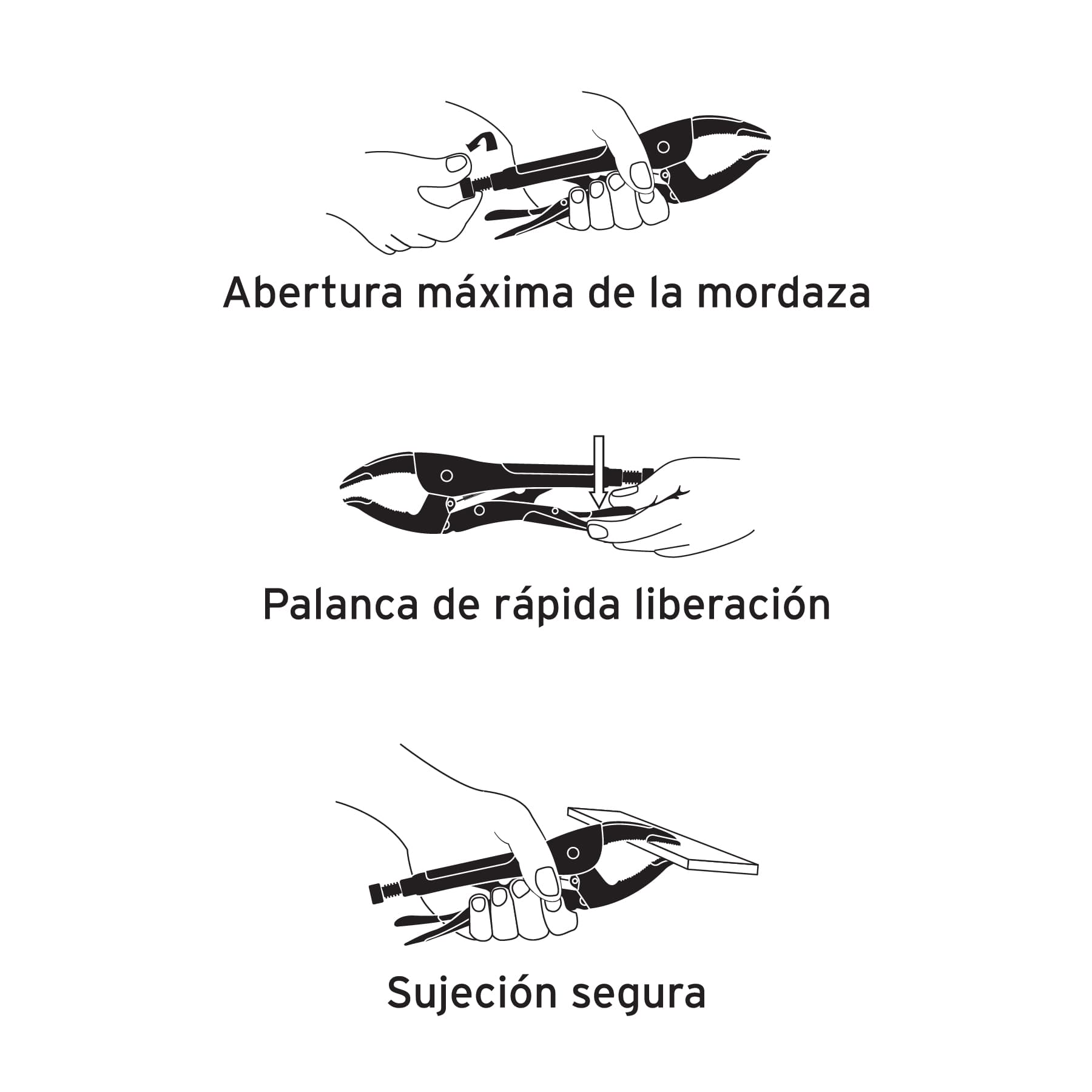 - Mordazas extra largas de acero al cromo vanadio con mayor capacidad de agarre