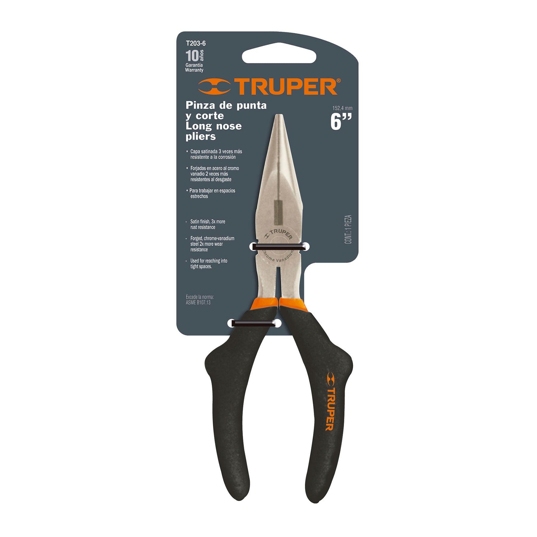 Pinza punta y corte 6", mango de vinil