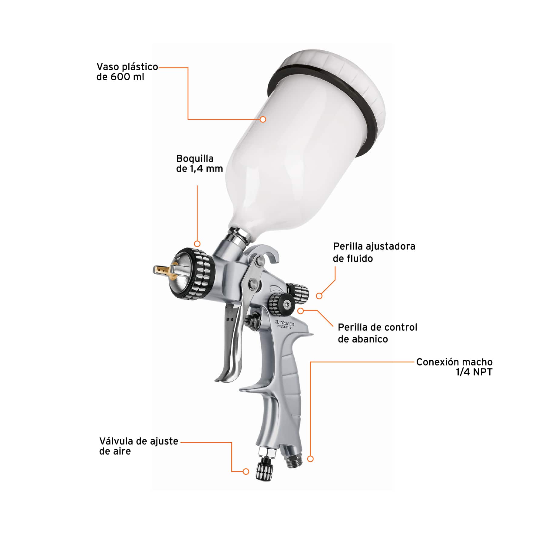 Pistola p/pintar gravedad HVLP, vaso plástico, 1.4 mm, Expert