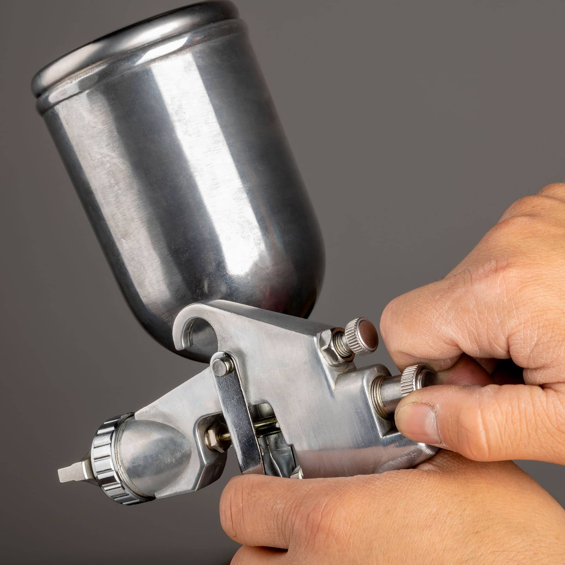 Pistola p/pintar gravedad LVMP, vaso aluminio, boquilla 2.0mm