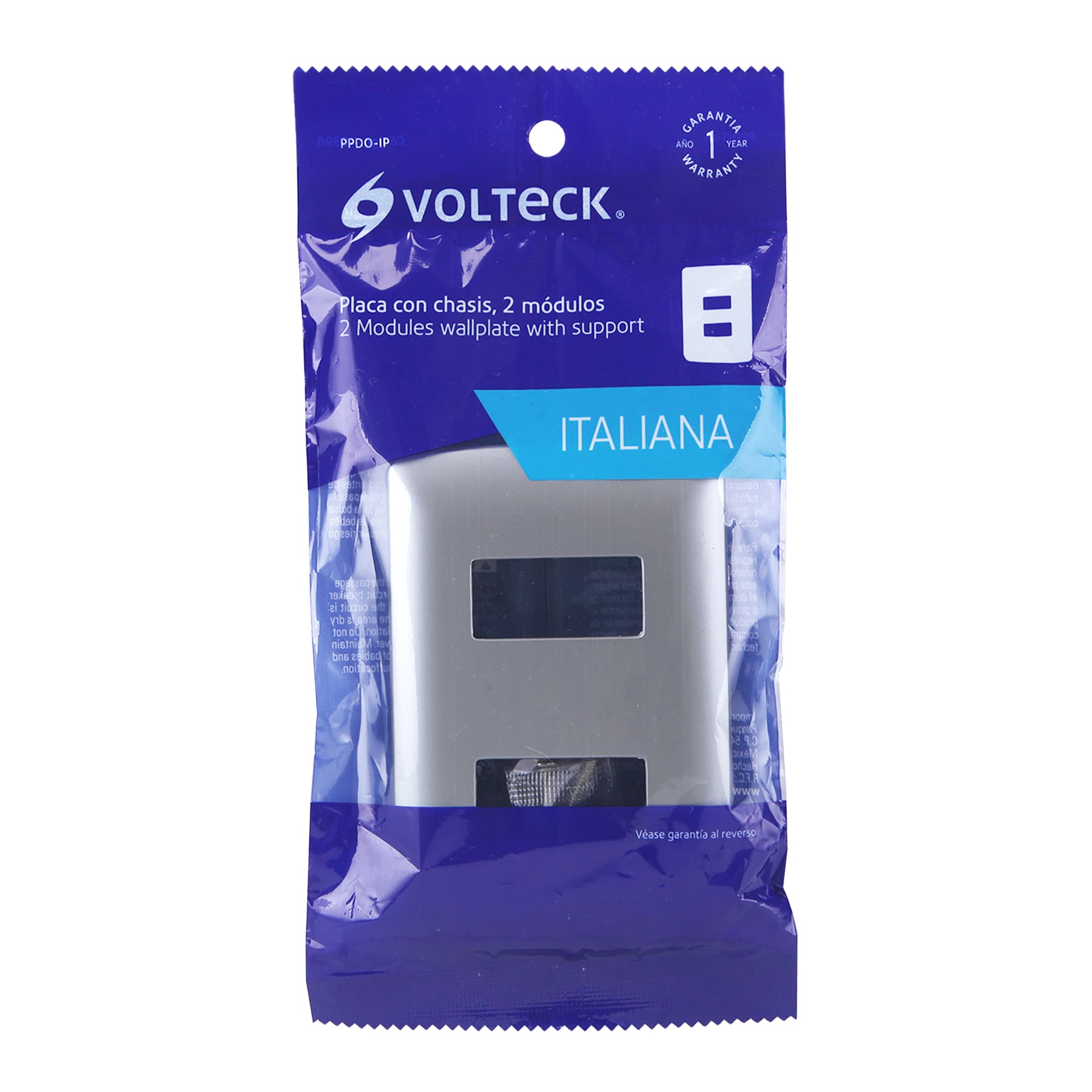 Placa 2 módulos de ABS, línea italiana, color plata