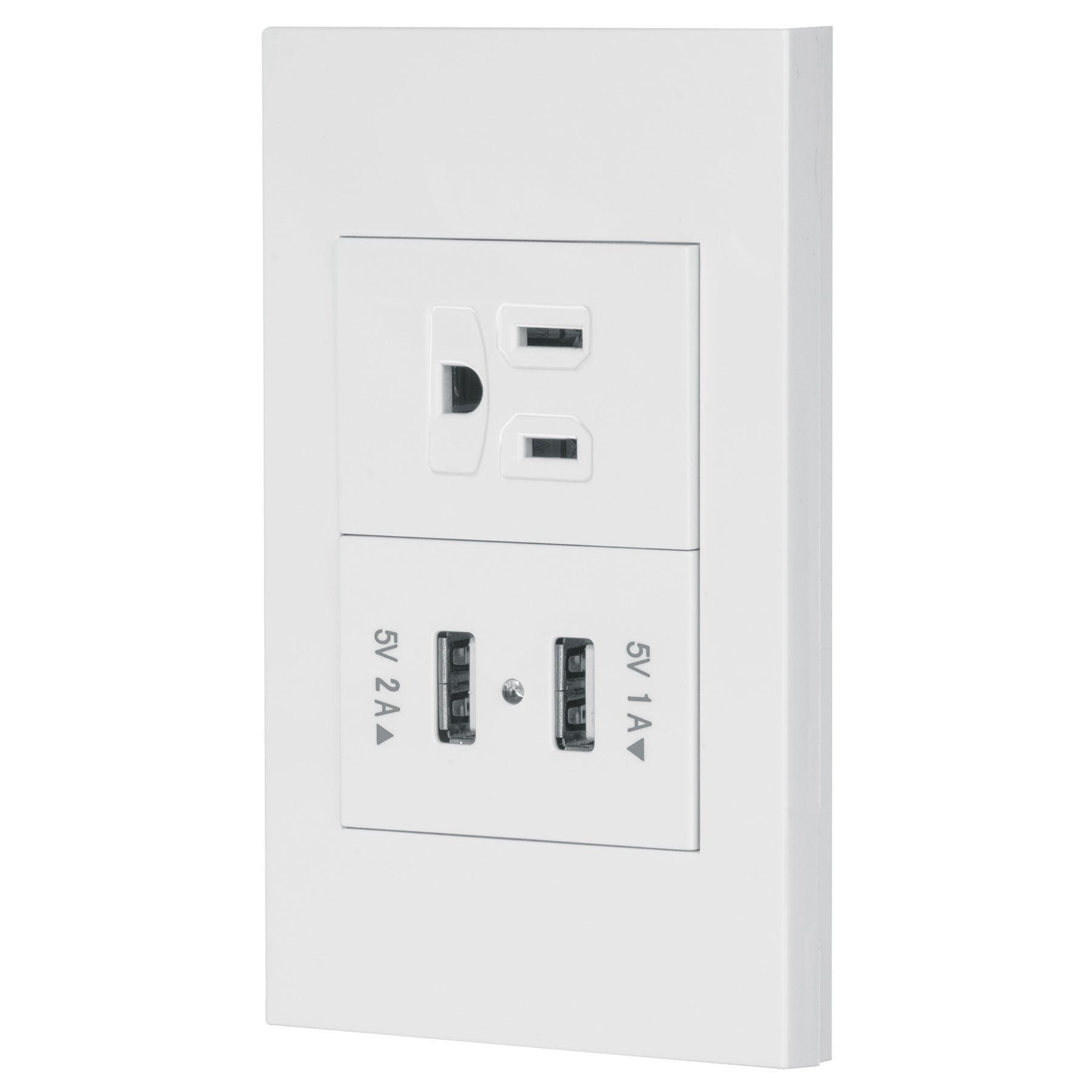 Placa armada 1 contacto, 2 puertos USB, 1.5mod, Española, blanco
