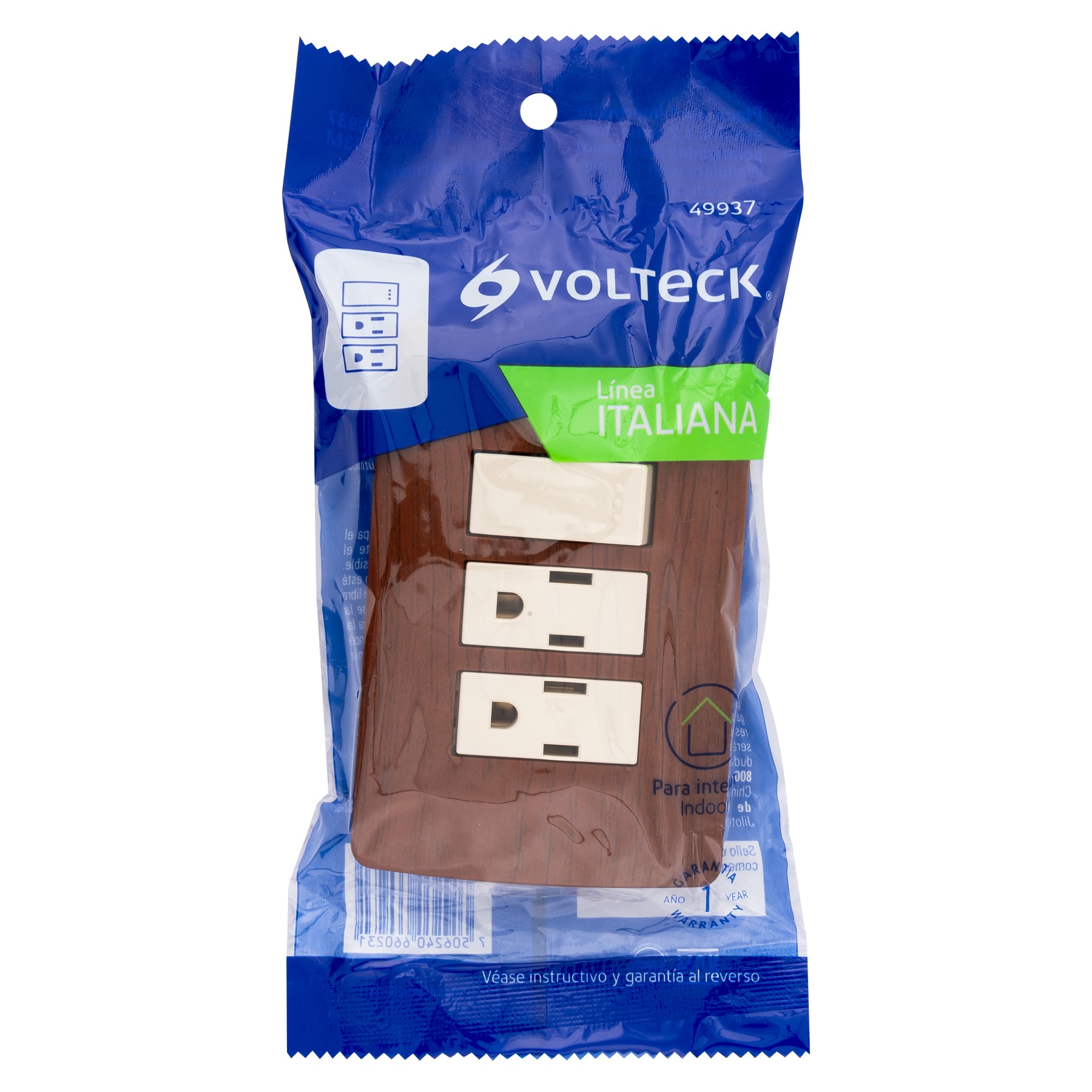Placa armada 2 contactos e interruptor, madera, línea Italiana
