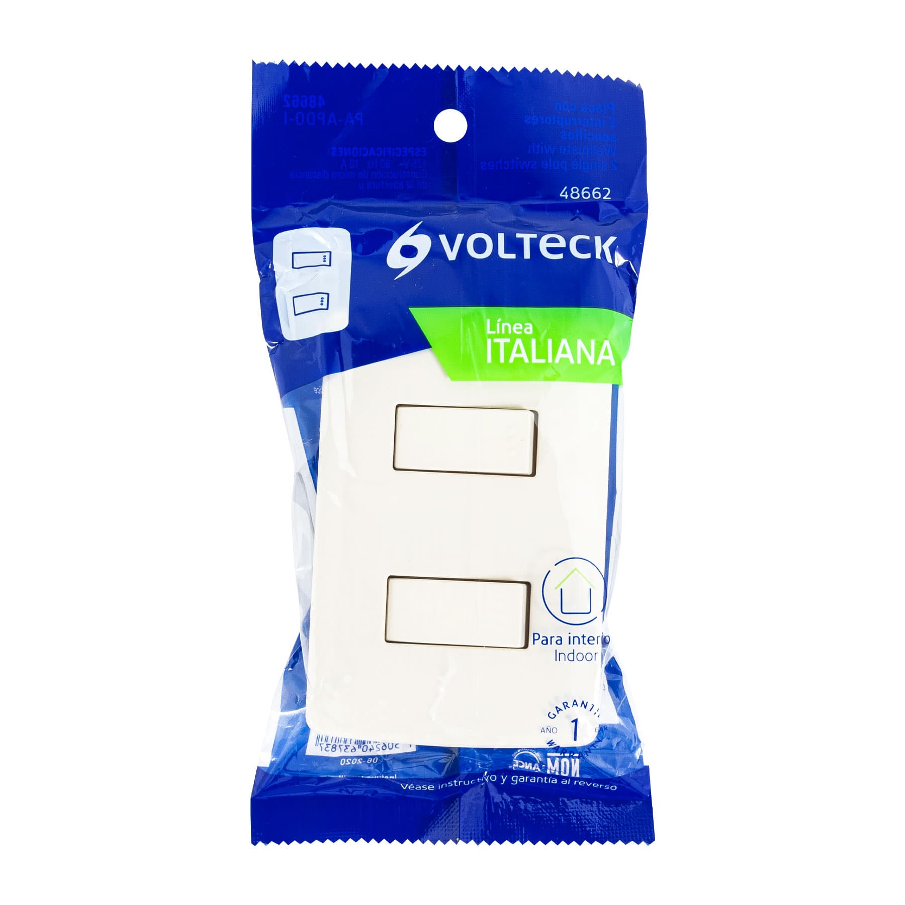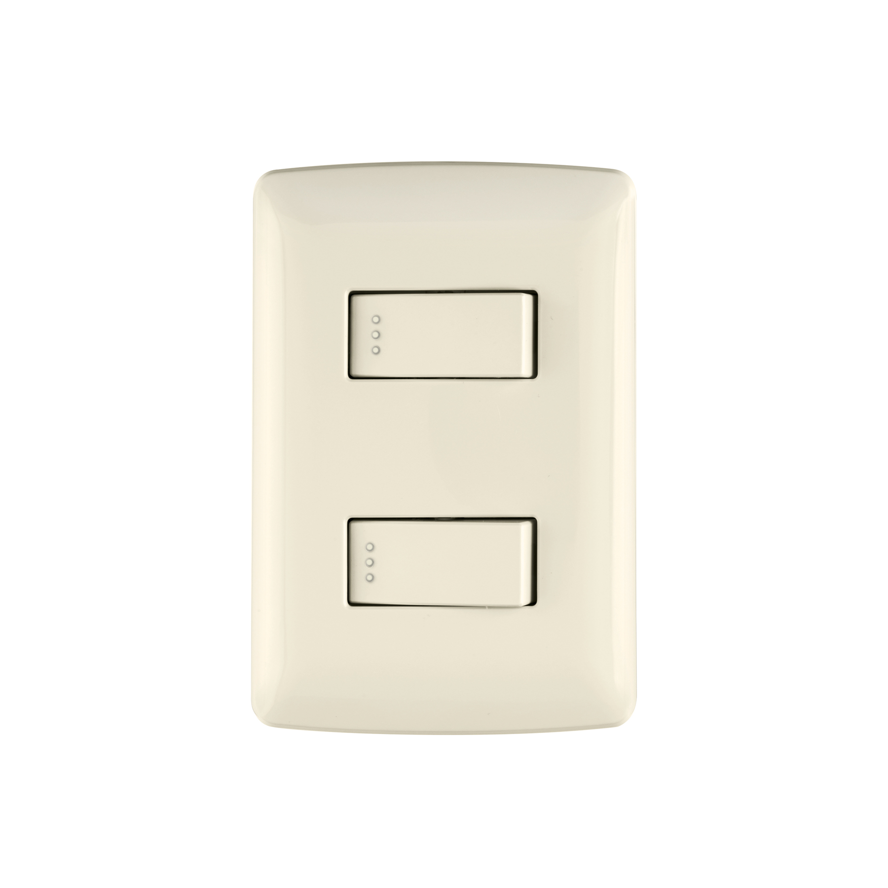 Placa armada 2 interruptores sencillos marfil, línea Italiana