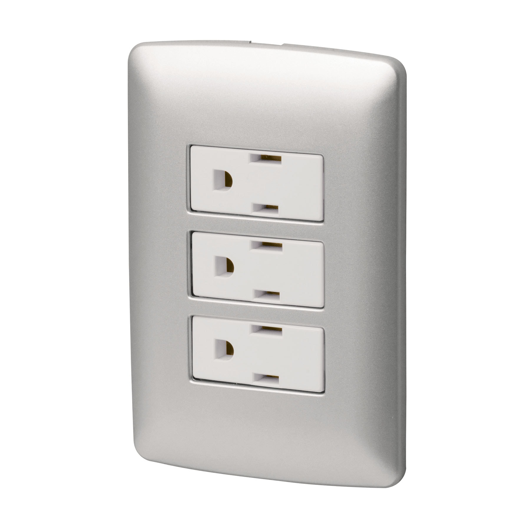 Placa armada 3 contactos aterrizados, plata, línea Italiana