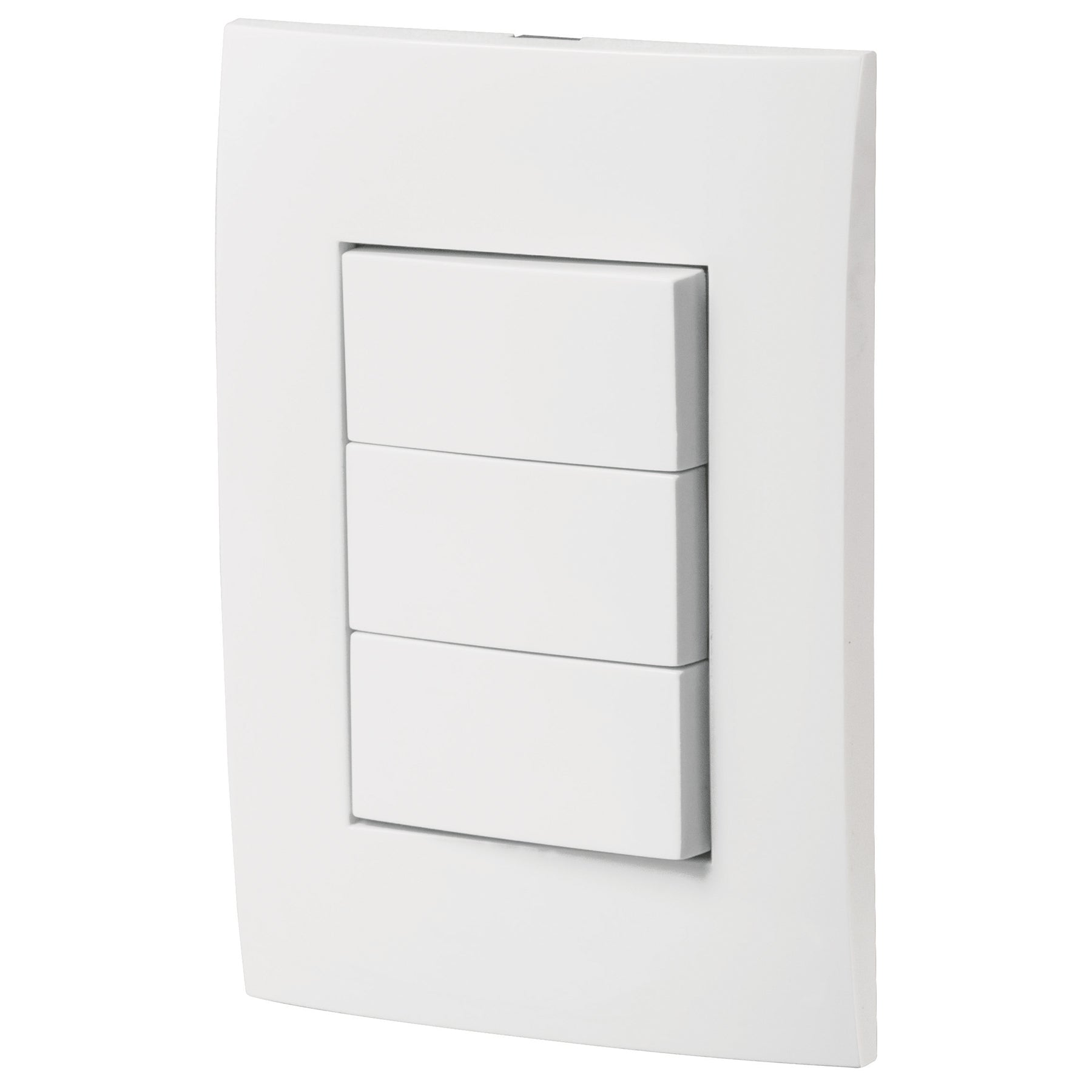 Placa armada 3 interruptores sencillos, línea Oslo, blanco
