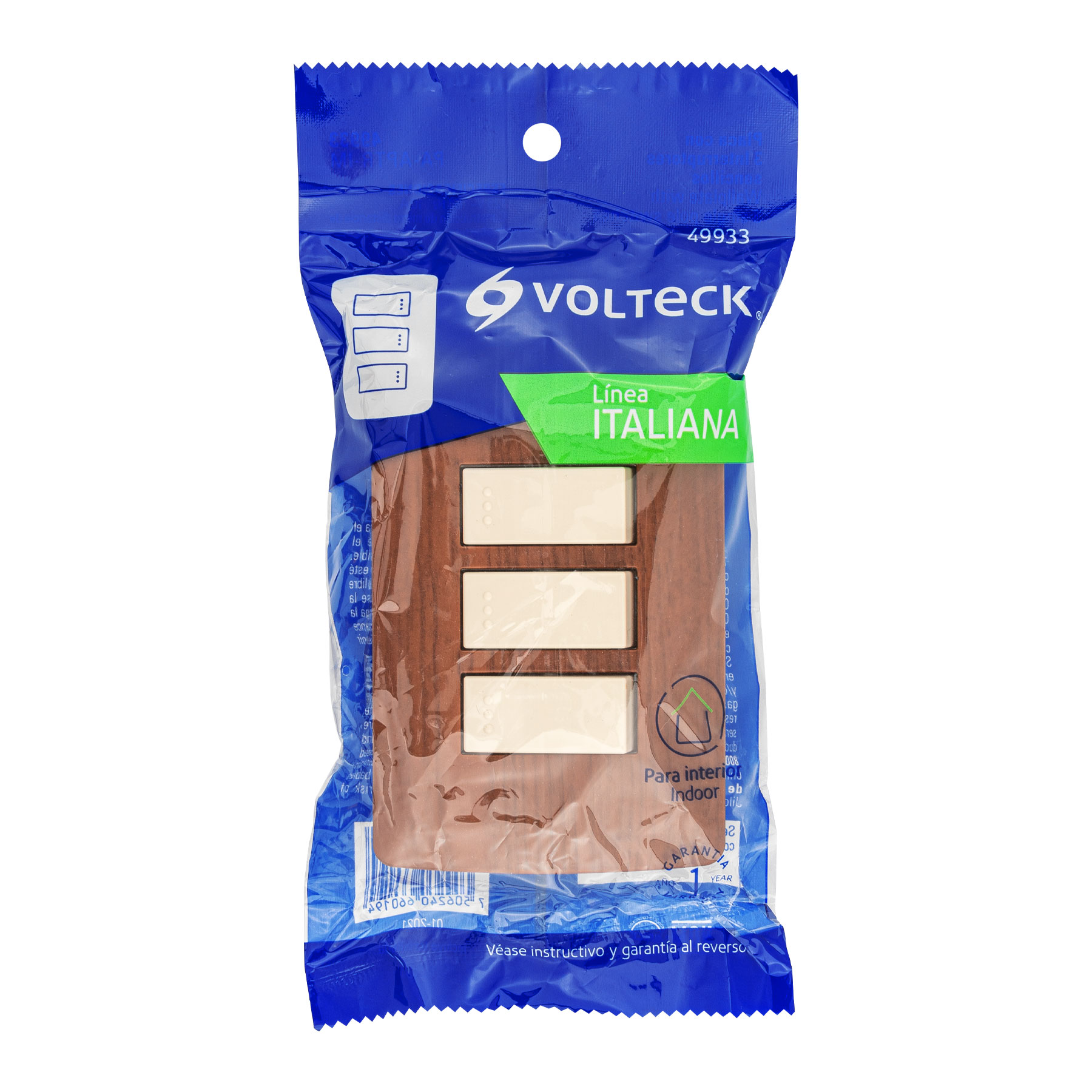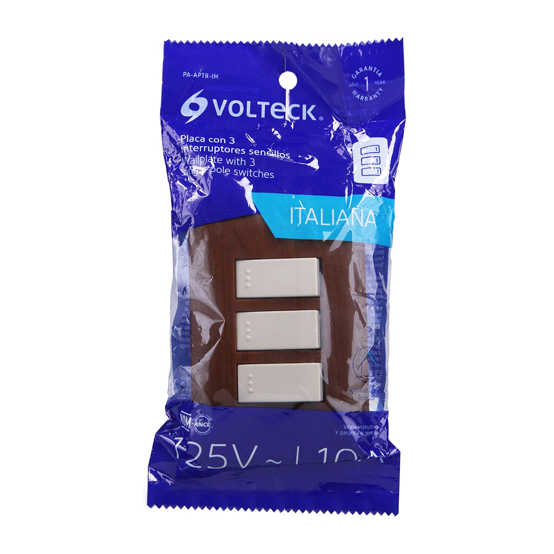 Placa armada 3 interruptores sencillos, madera, línea Italiana