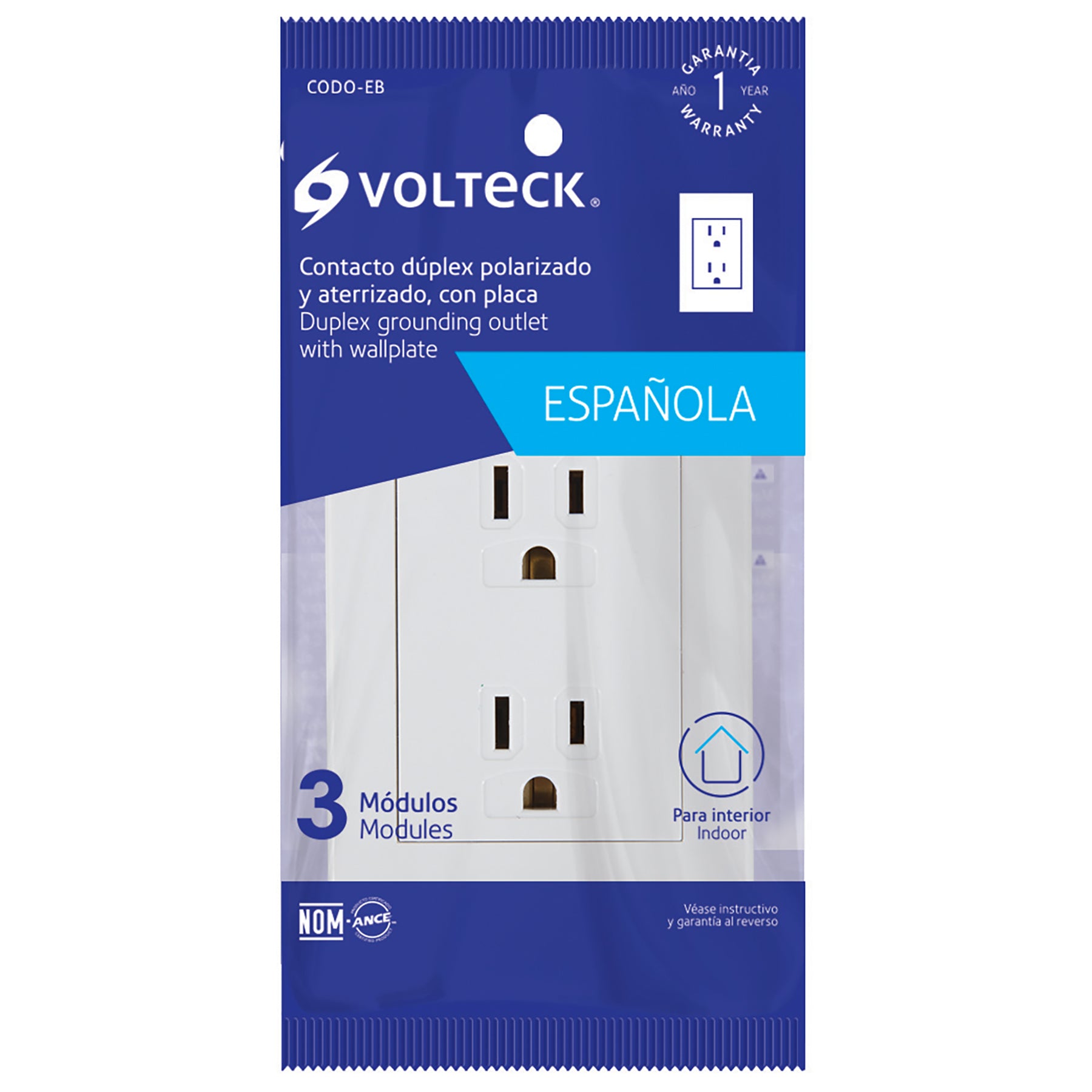 Placa armada contacto dúplex, 3 módulos, Española, blanco