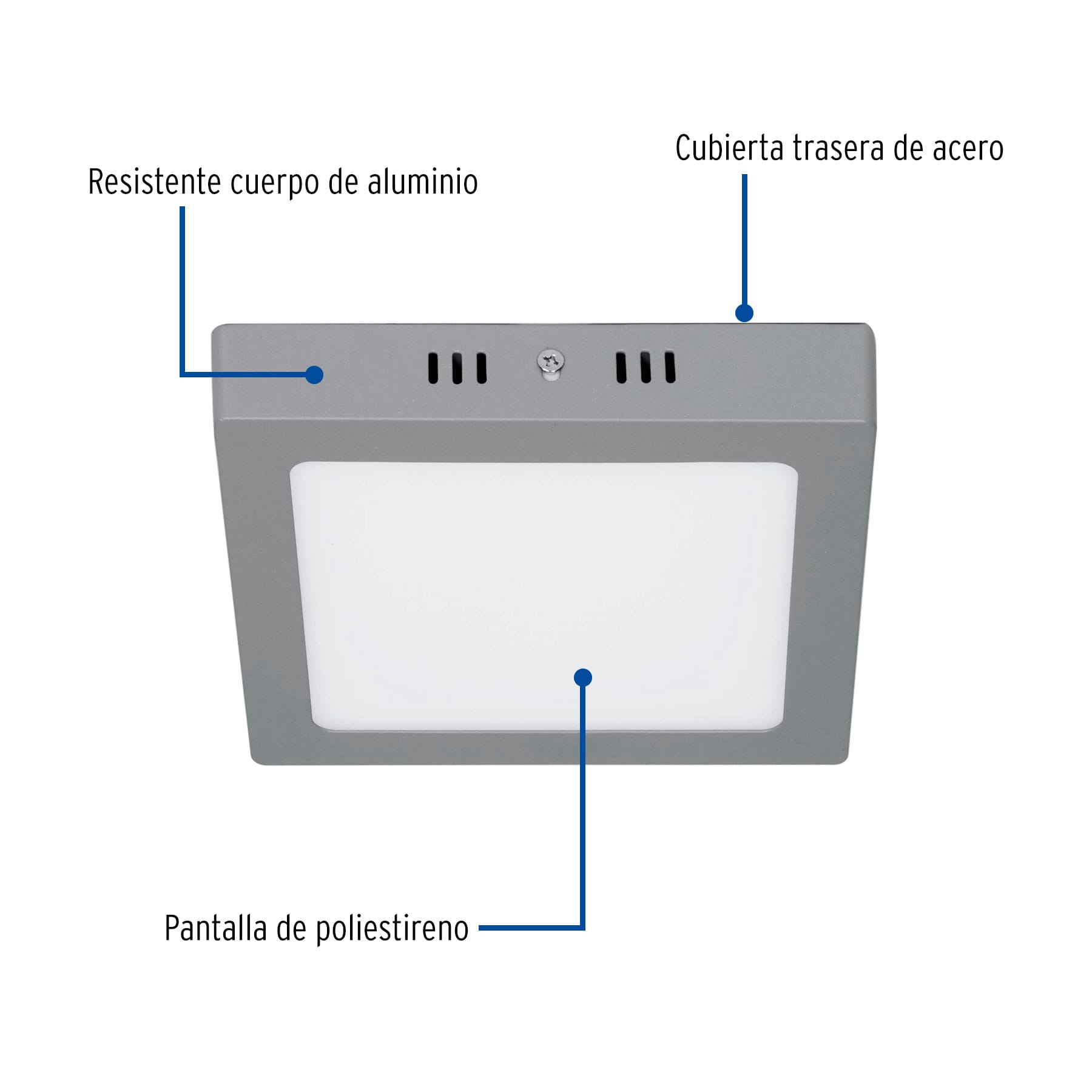 - Cuerpos de aluminio y pantallas de poliestireno