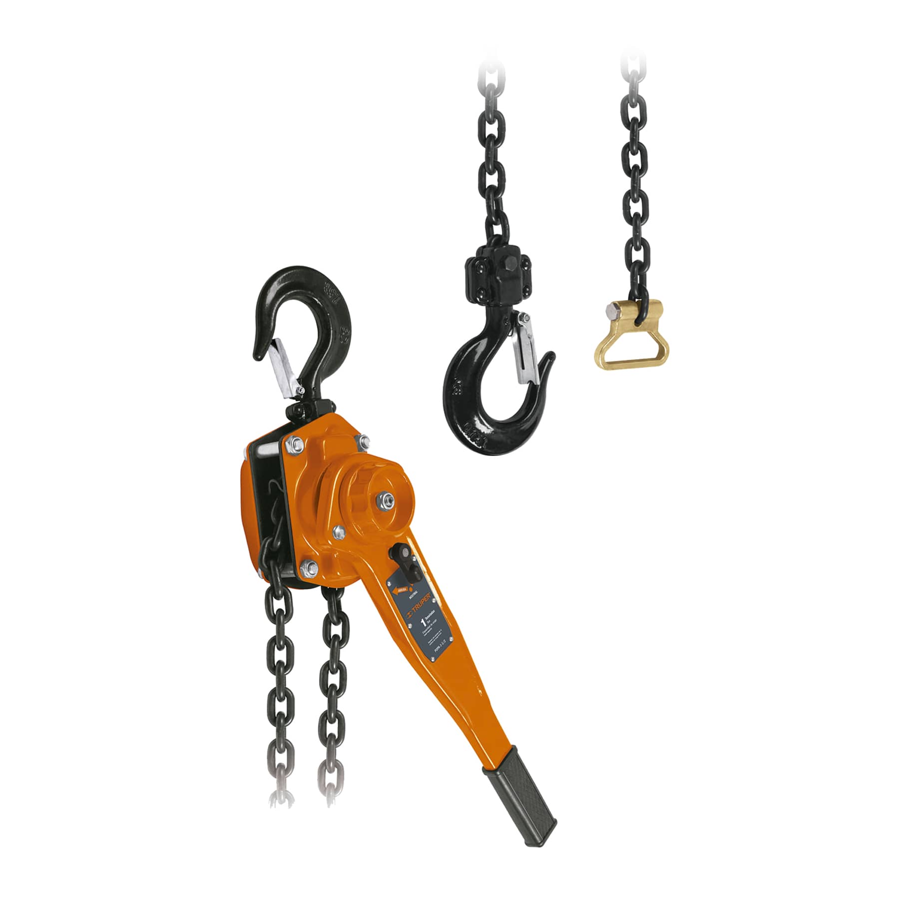 - Ganchos forjados en acero al cromo con giro de 360° y pestaña de seguridad