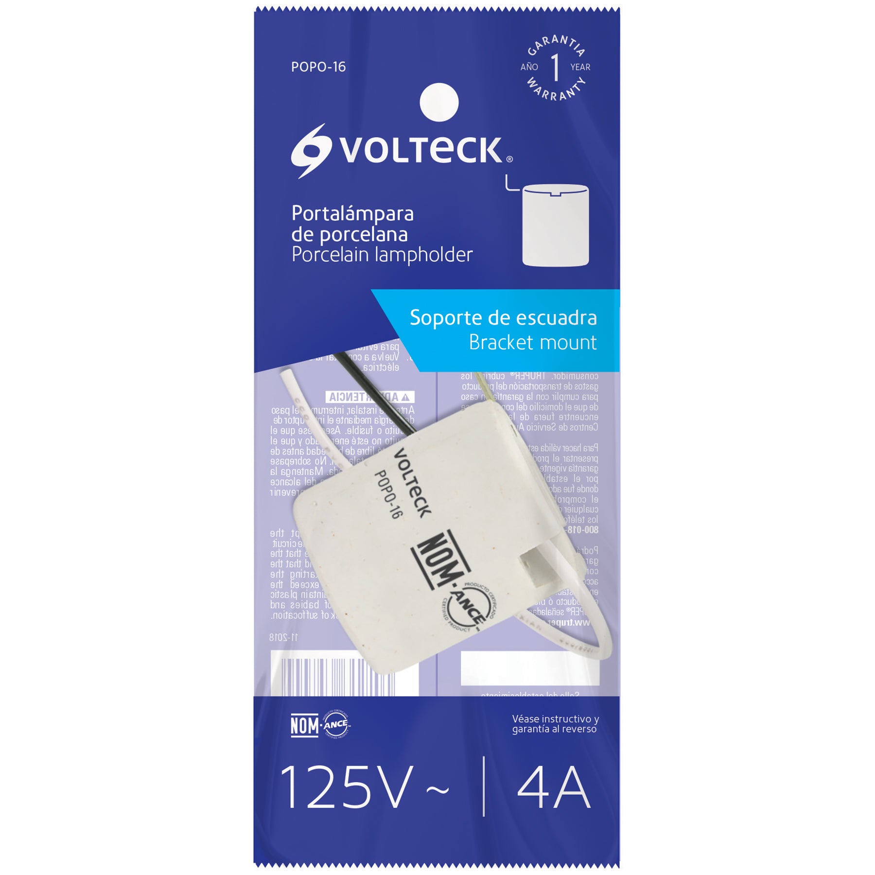 Portalámpara de porcelana, soporte tipo escuadra, Volteck