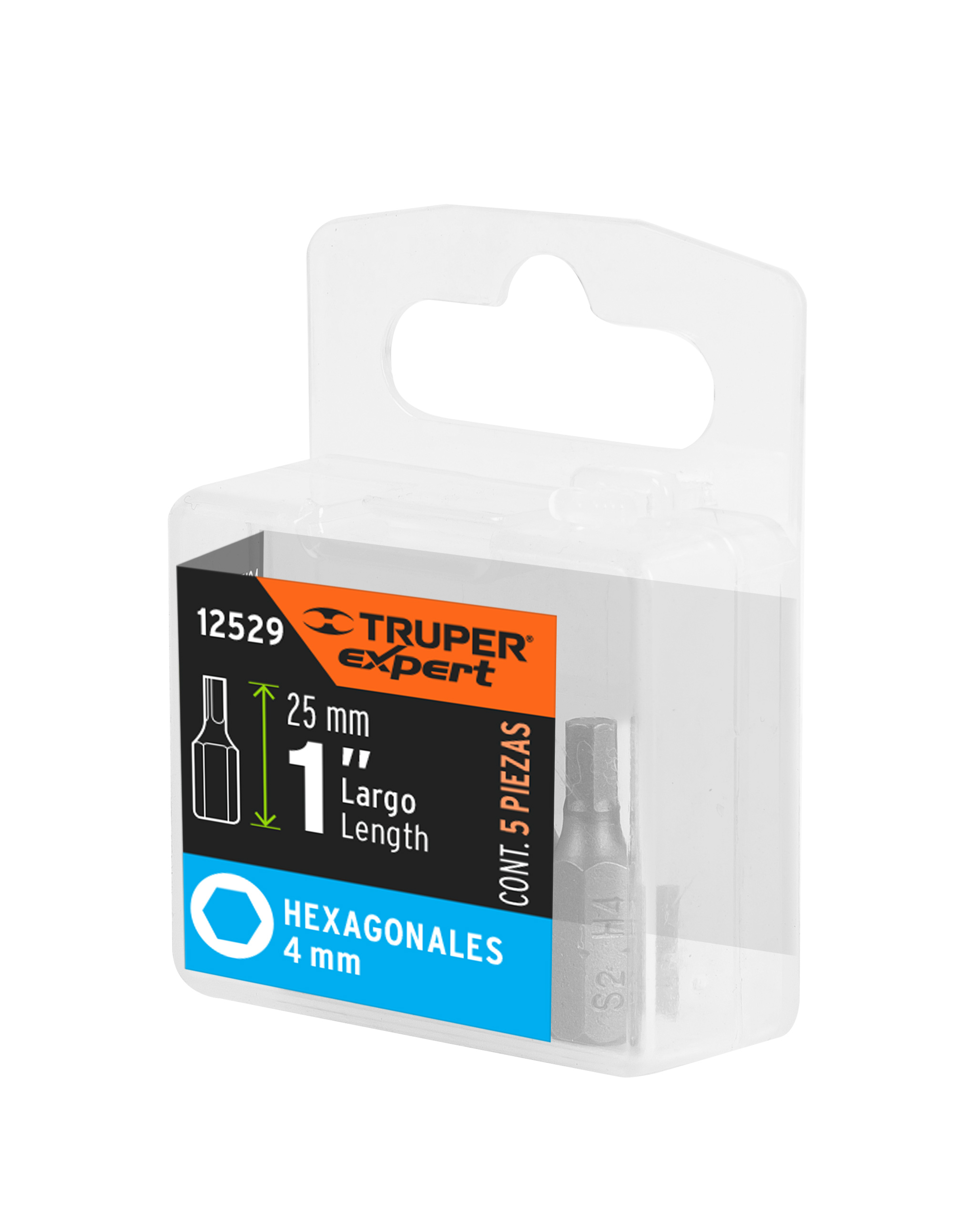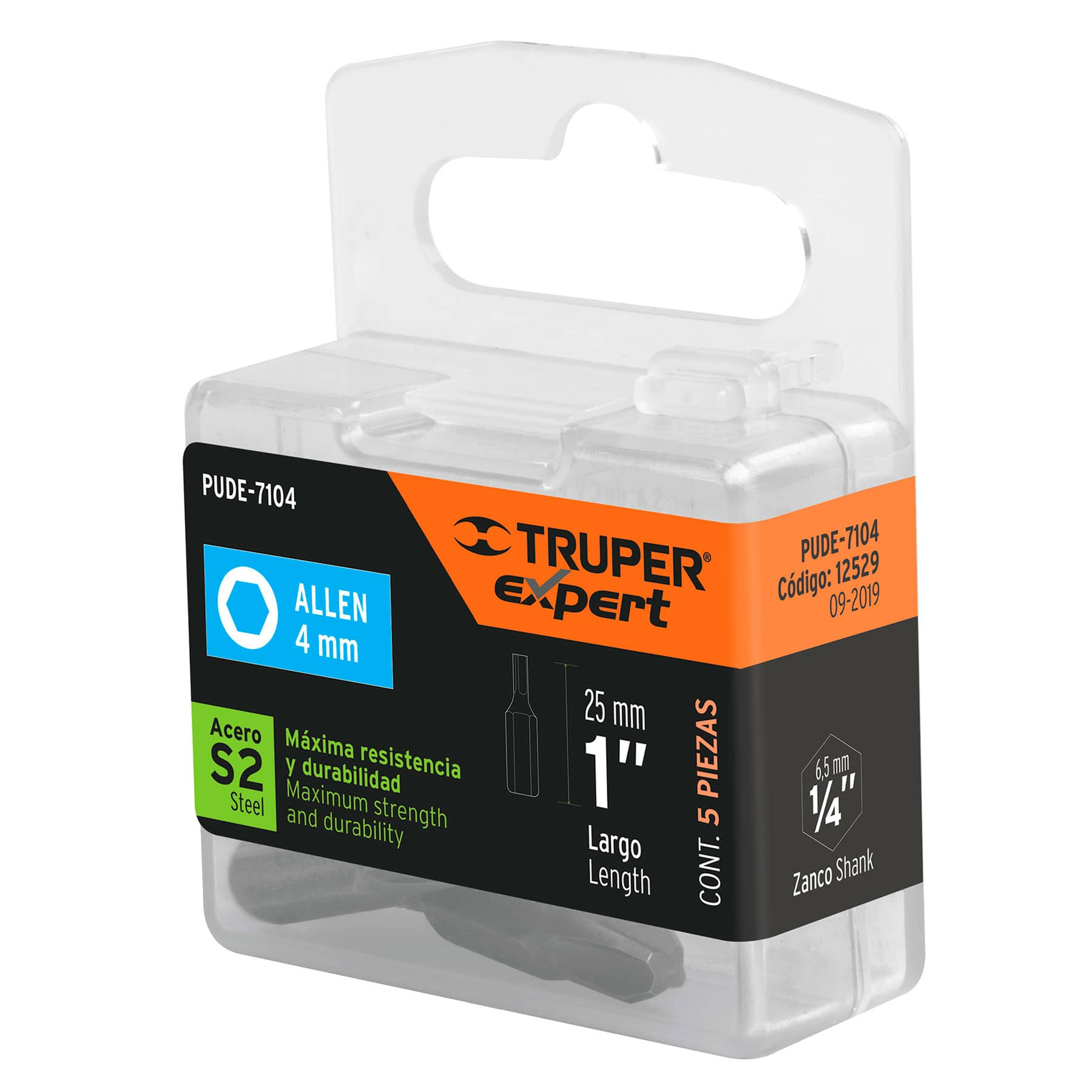 Puntas para desarmador hexagonales 4 mm, 1", 5 piezas
