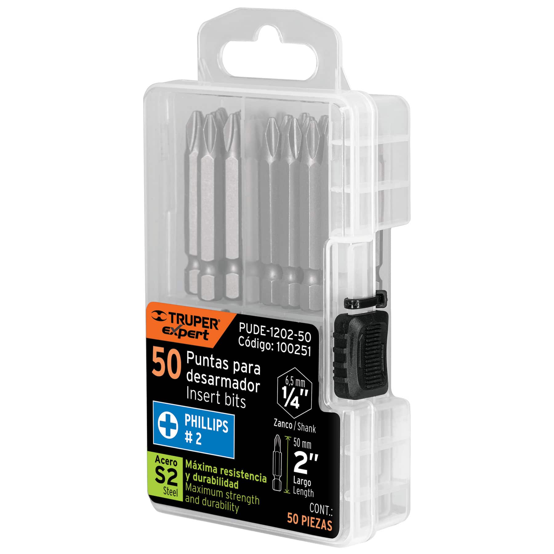 Puntas para desarmador Phillips PH2, 2", 50pzas, Truper