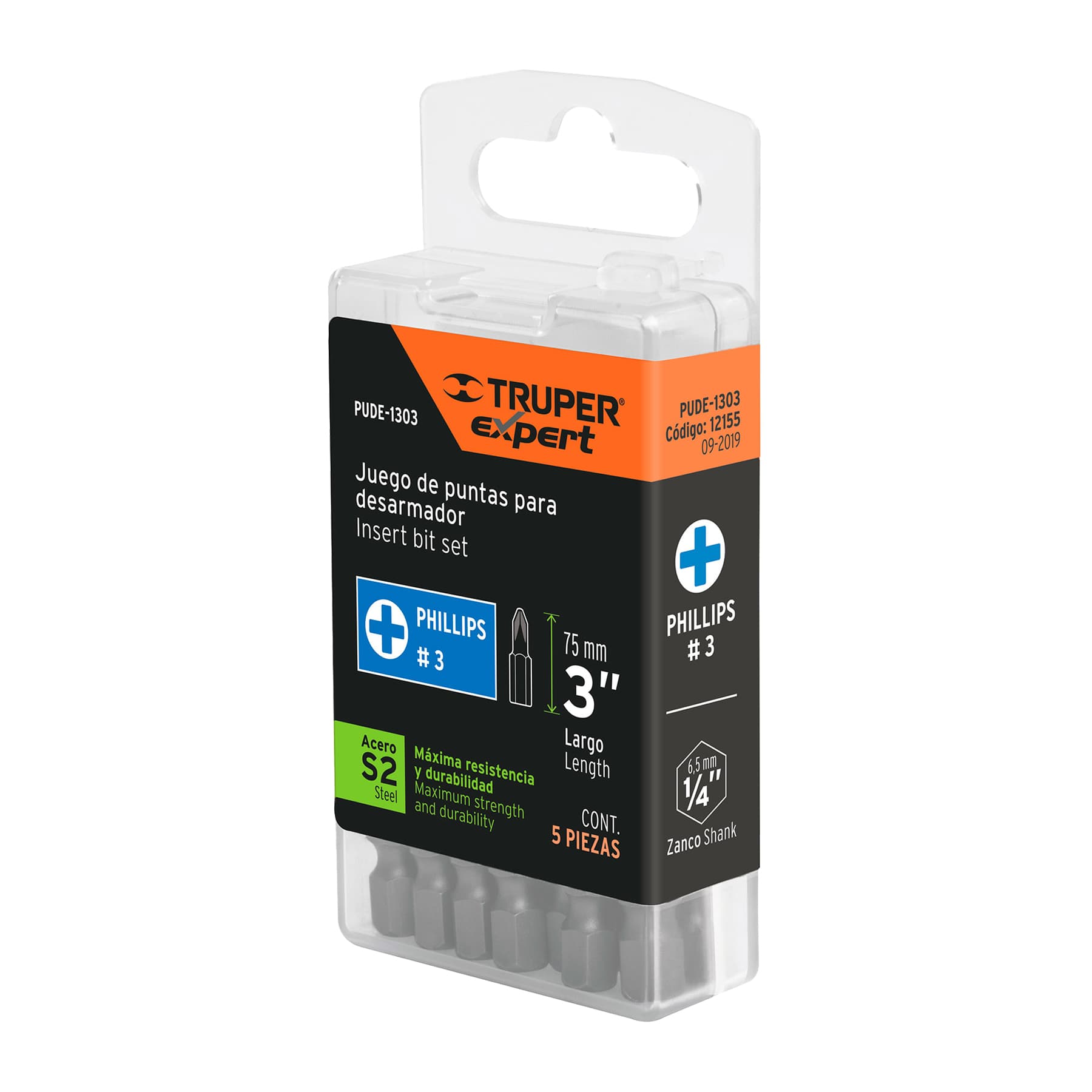 Puntas Phillips #3, 3", estuche con 5 piezas, Expert