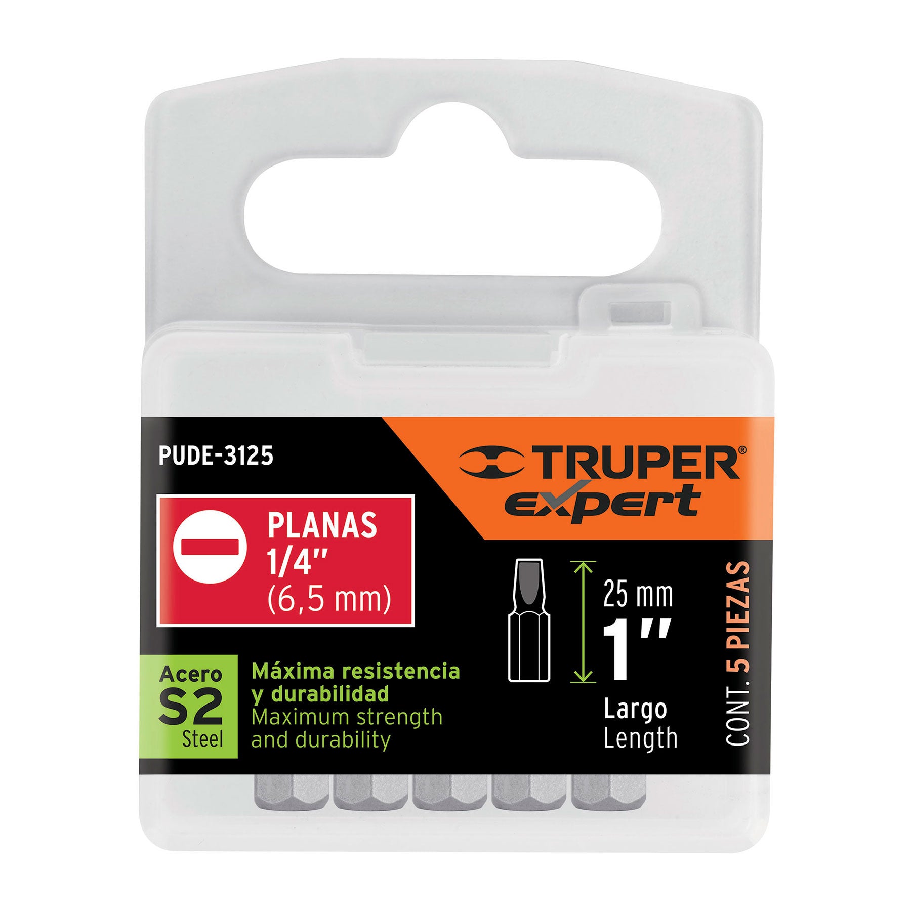 Puntas planas 1/4", 1", estuche con 5 piezas, Expert